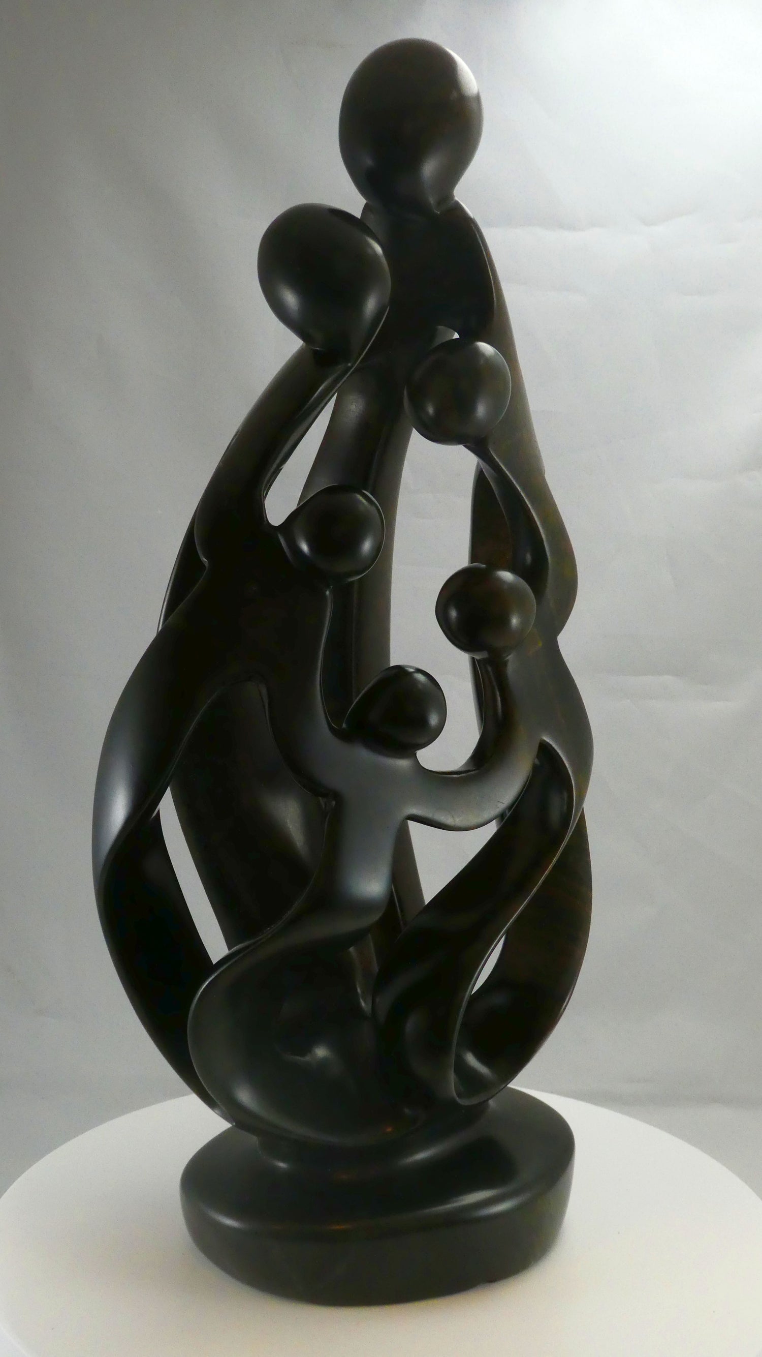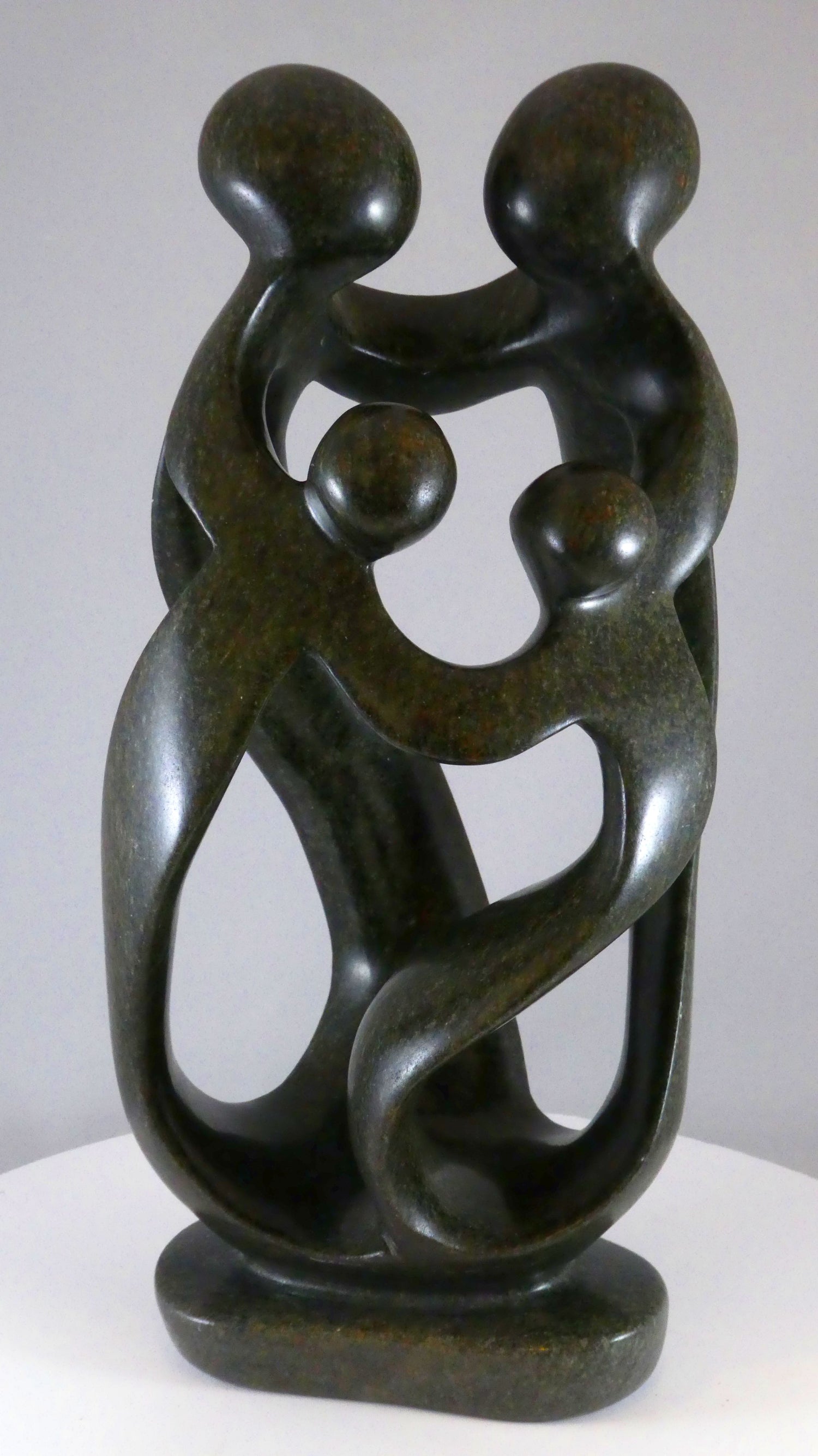 Stenen beeld, 6 personen, 44 cm hoog, familie, glad afgewerkt