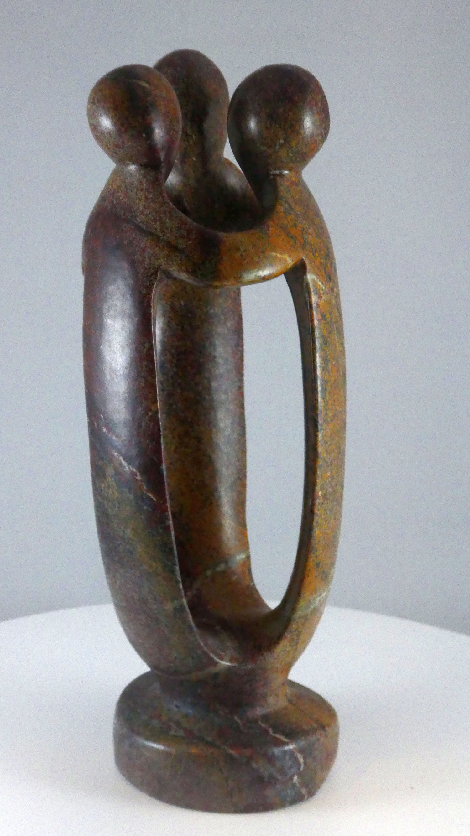 Stenen beeld, 2 geliefden, 24 cm hoog, ringvormig, volledig glad afgewerkt