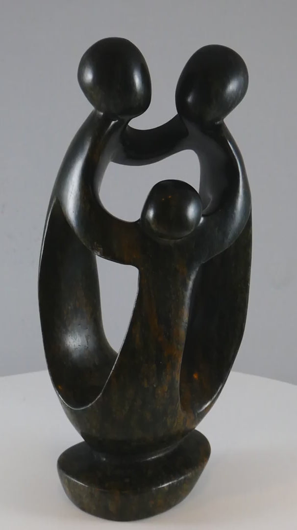 Stenen beeld, 3 personen, 20 cm hoog, familie, glad afgewerkt