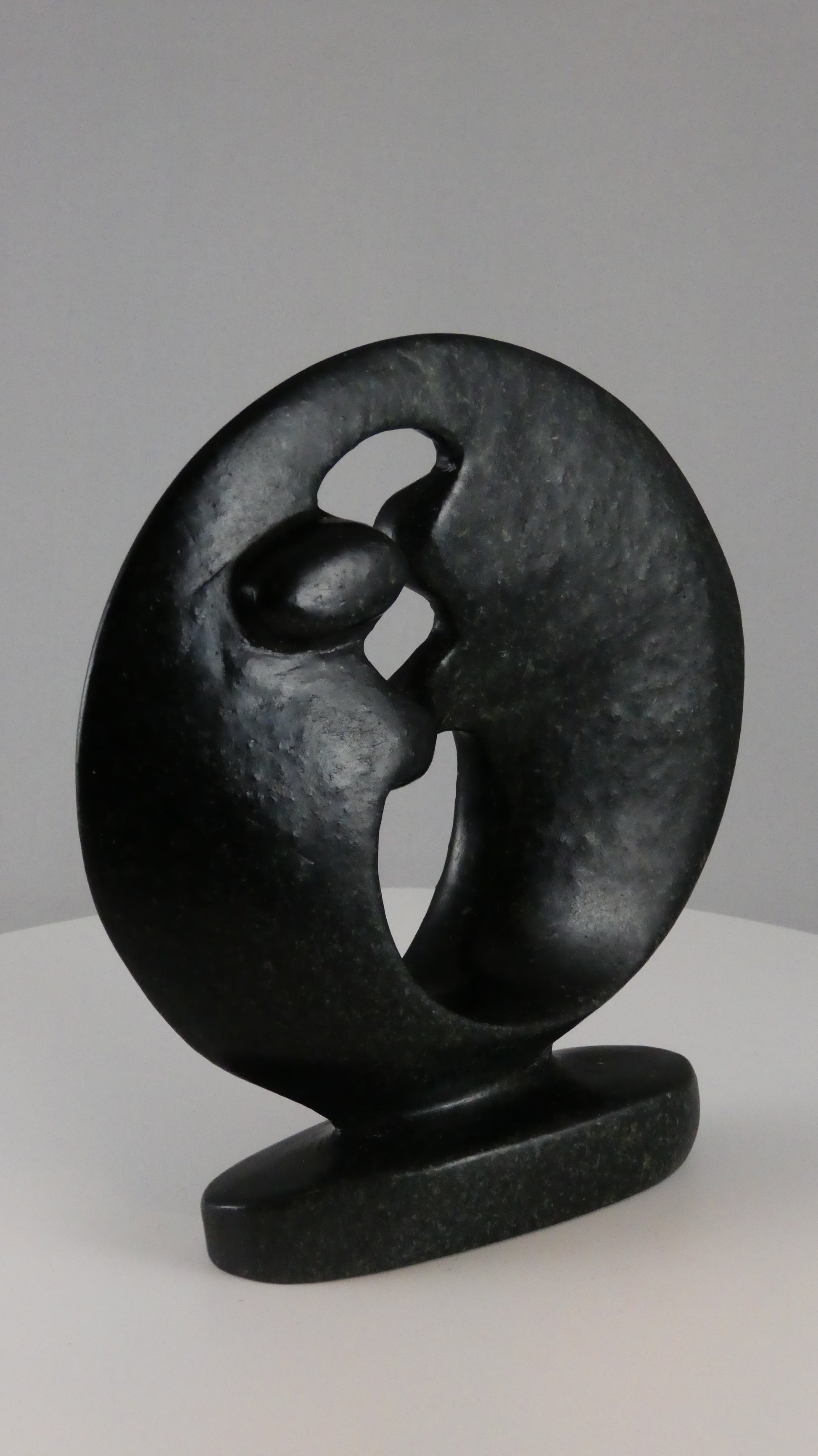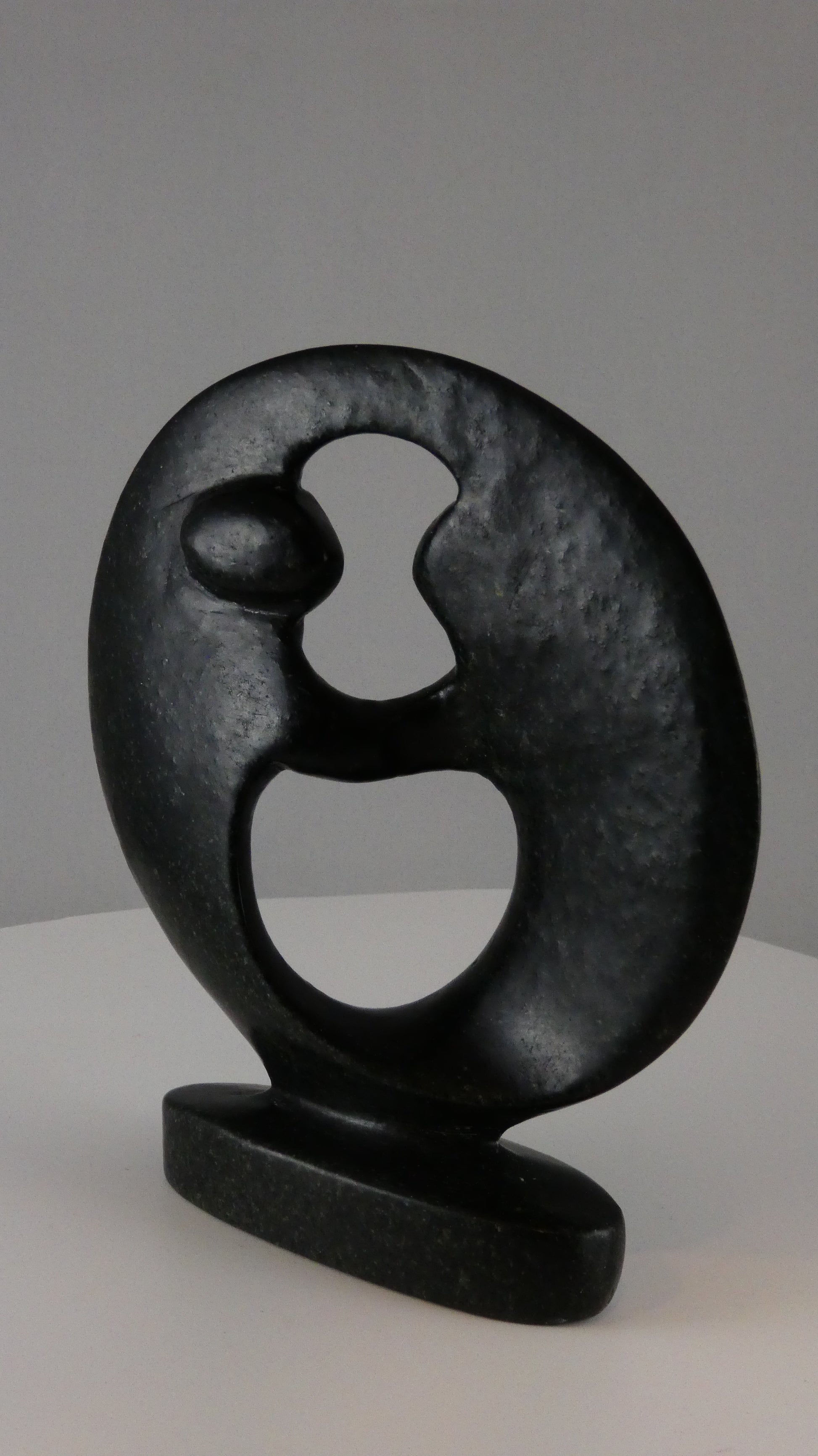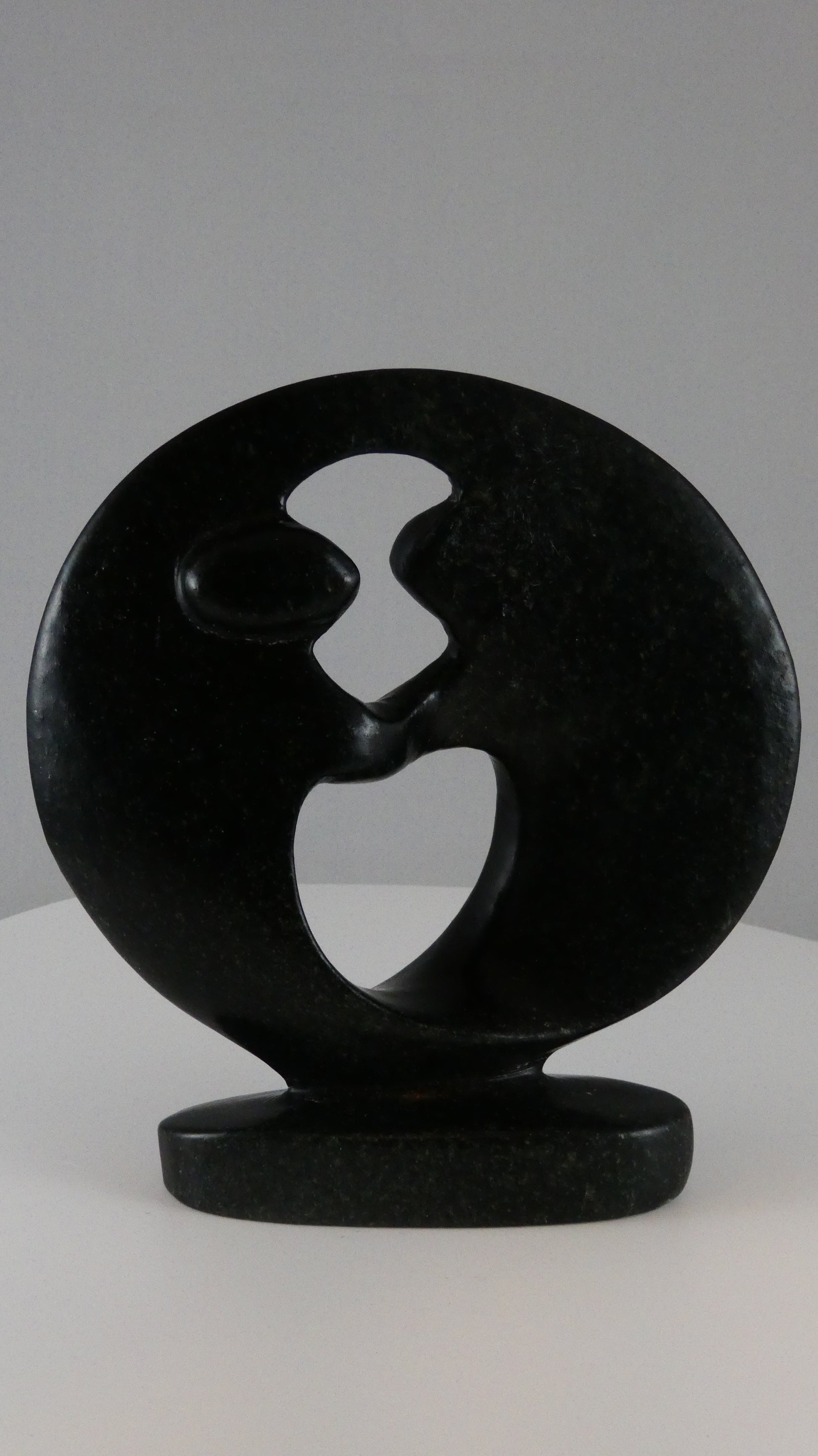 Stenen beeld, 2 geliefden, 16 cm hoog, ringvormig, volledig glad afgewerkt