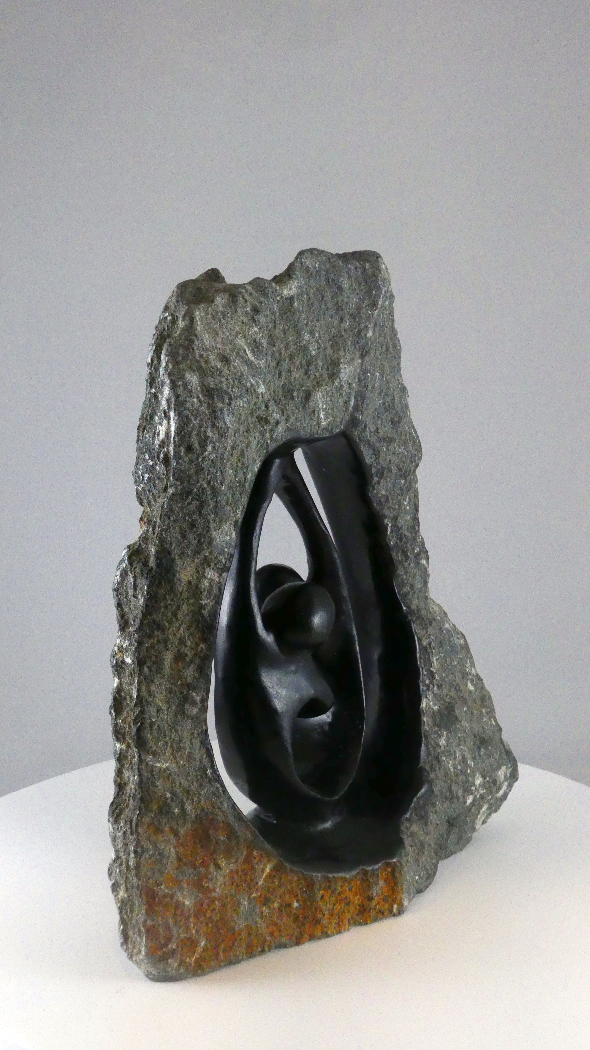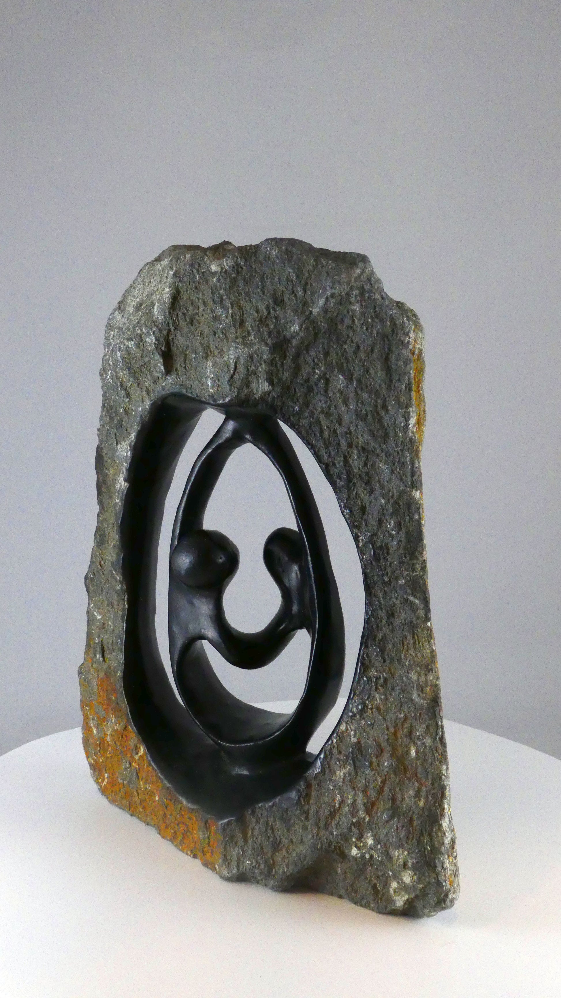 Stenen beeld, 2 personen, buitenzijde ruw, binnenzijde glad afgewerkt