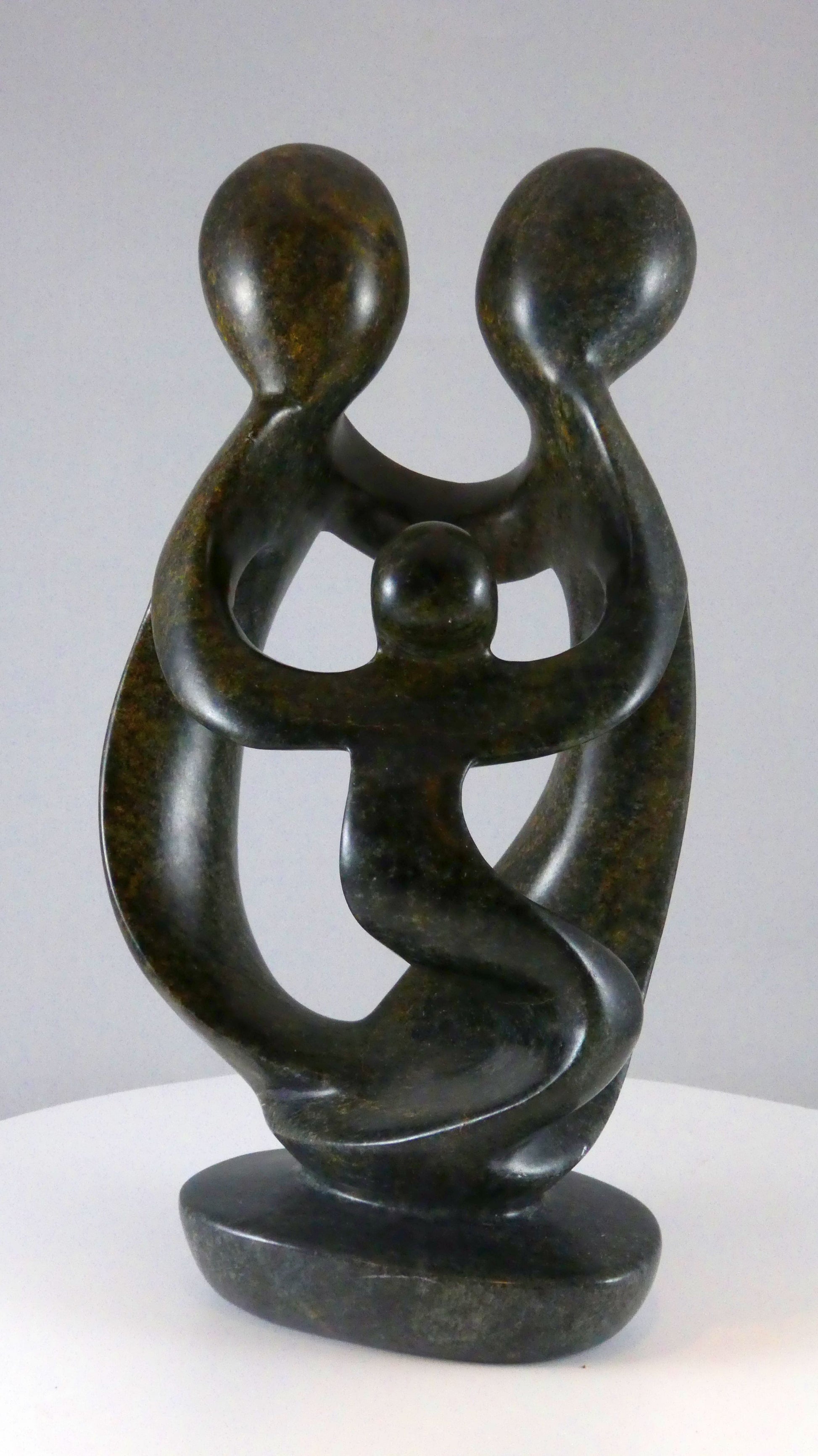 Stenen beeld, 3 personen, 24 cm hoog, familie, glad afgewerkt
