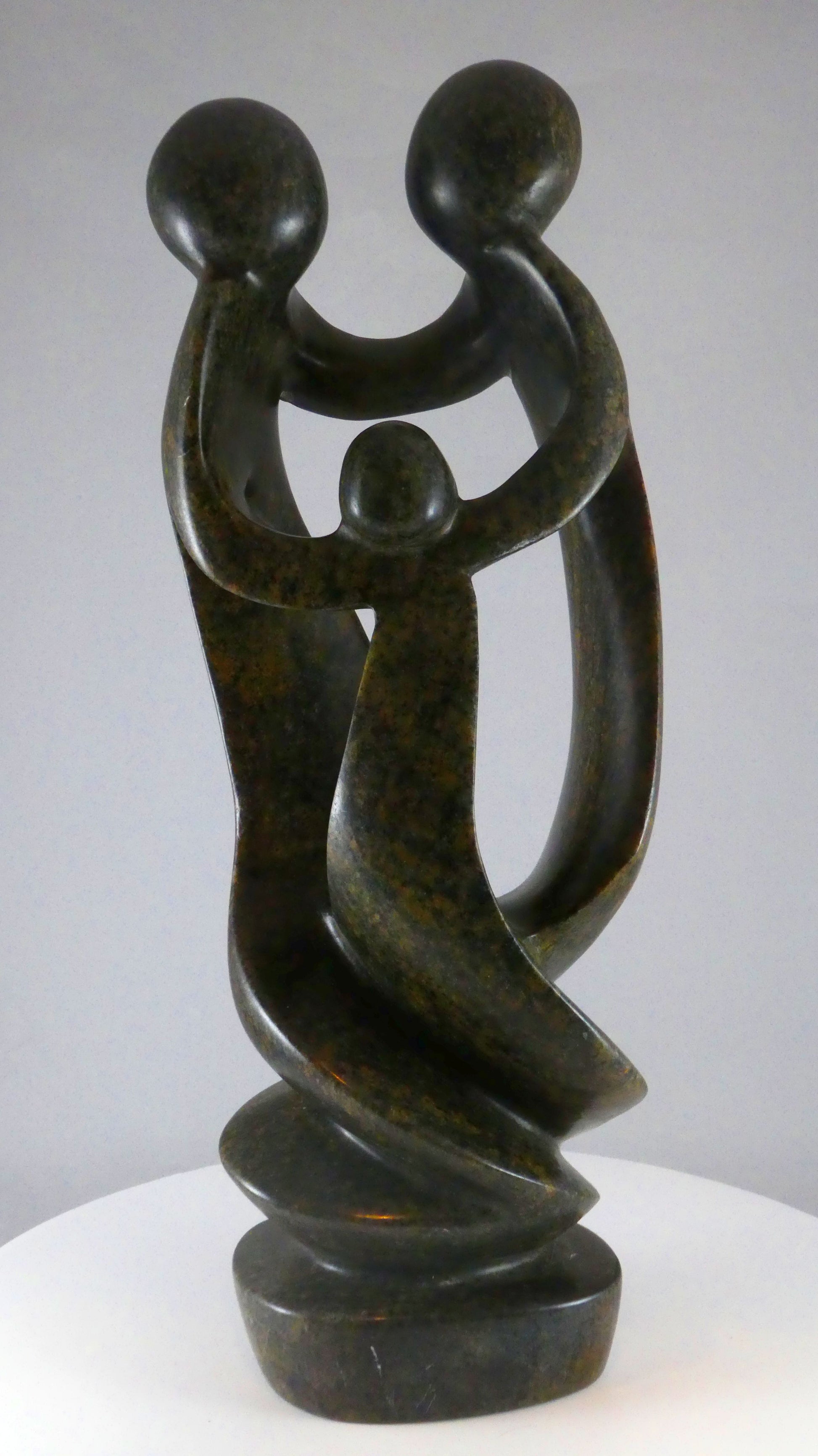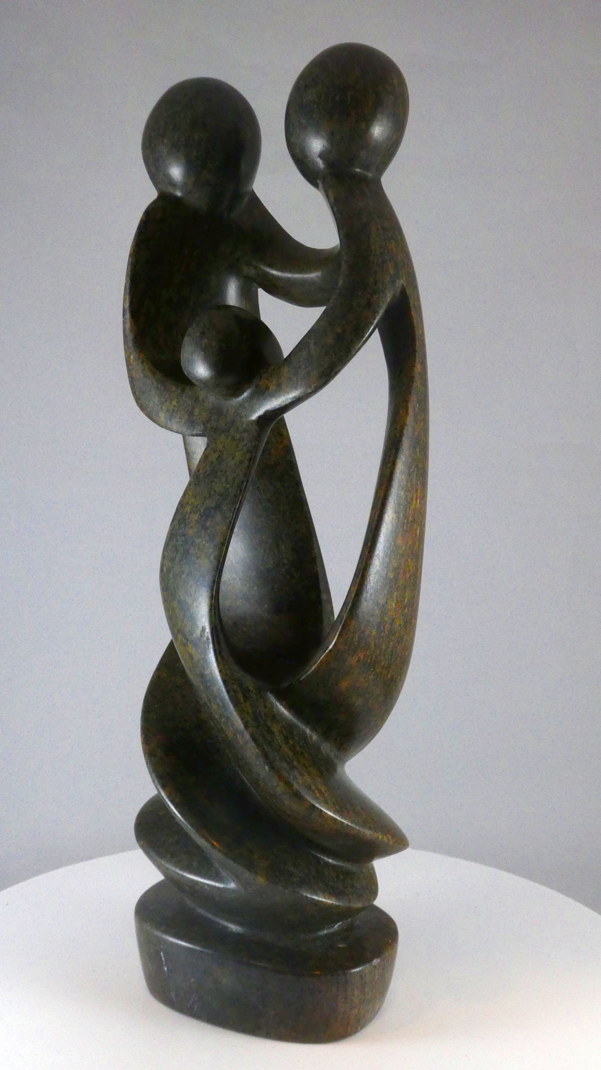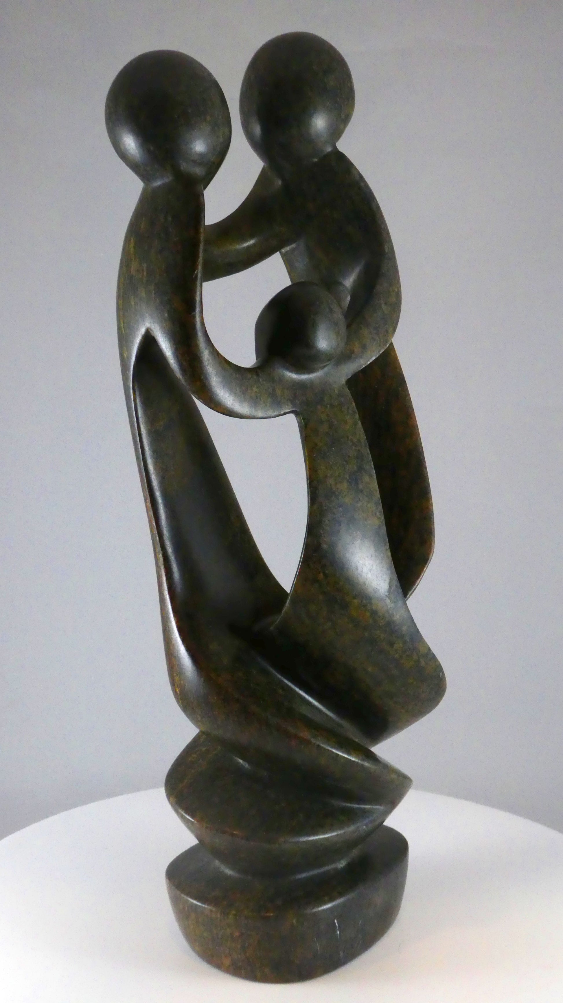 Stenen beeld, 3 personen, 36 cm hoog, familie, glad afgewerkt