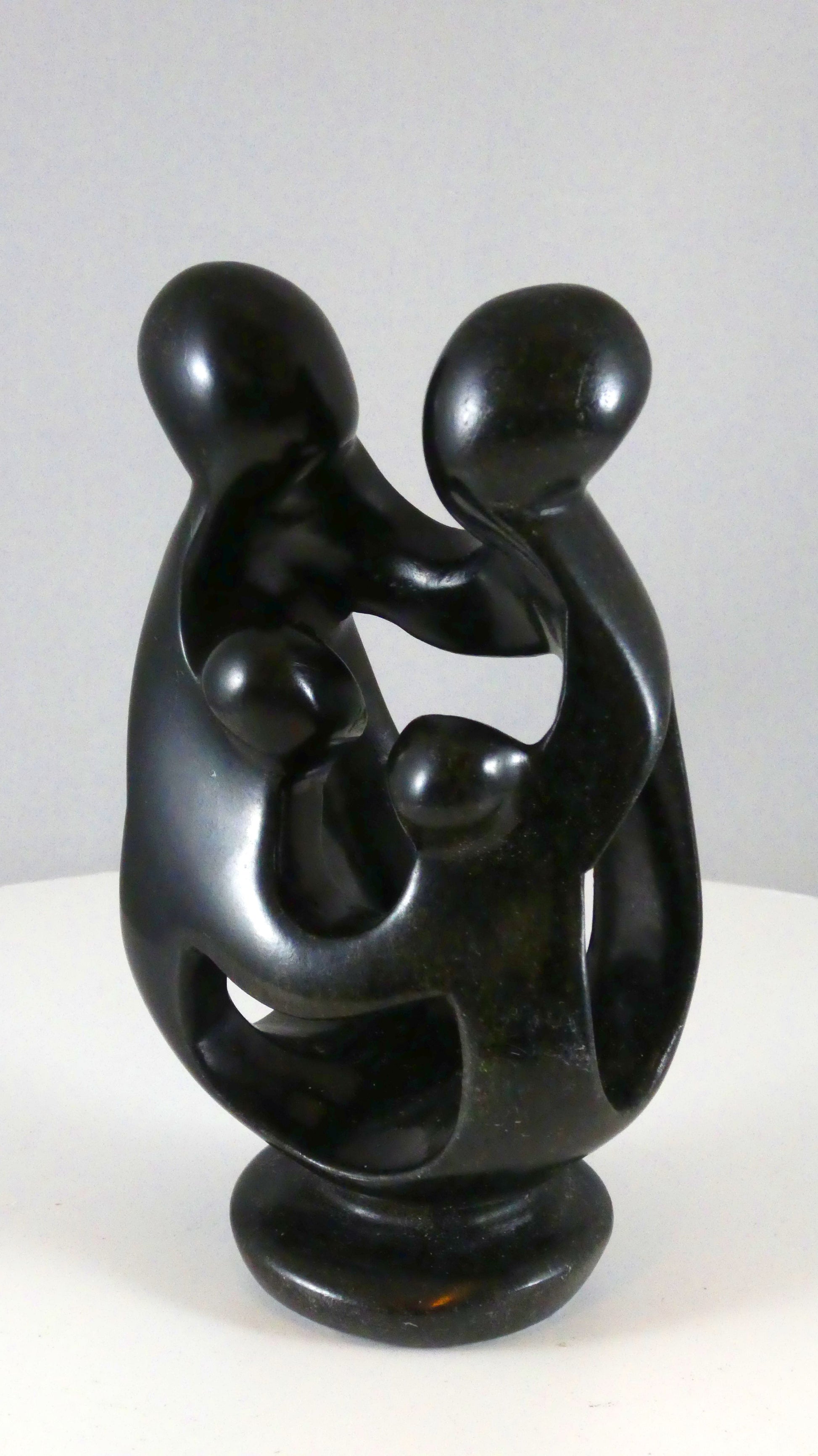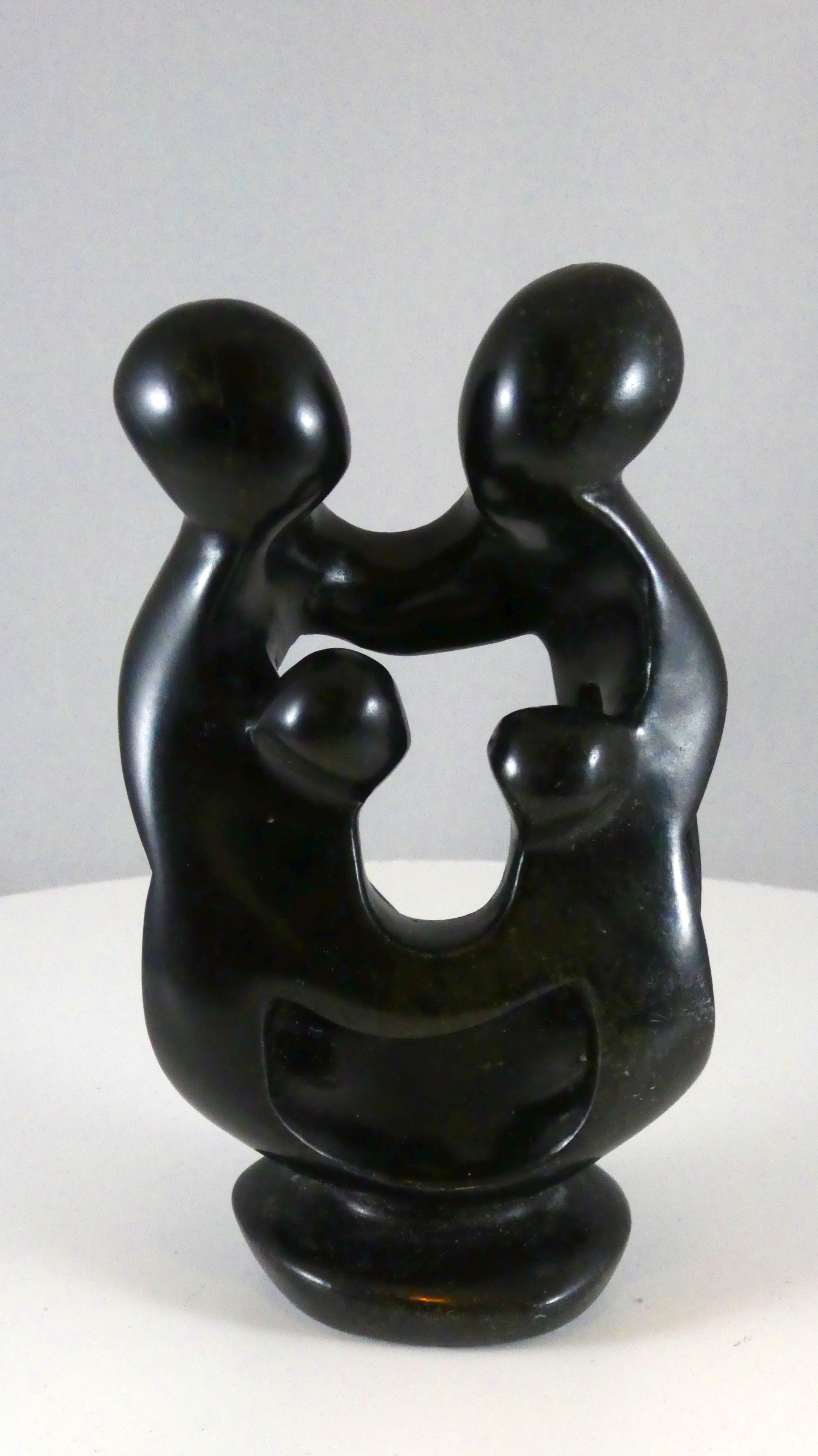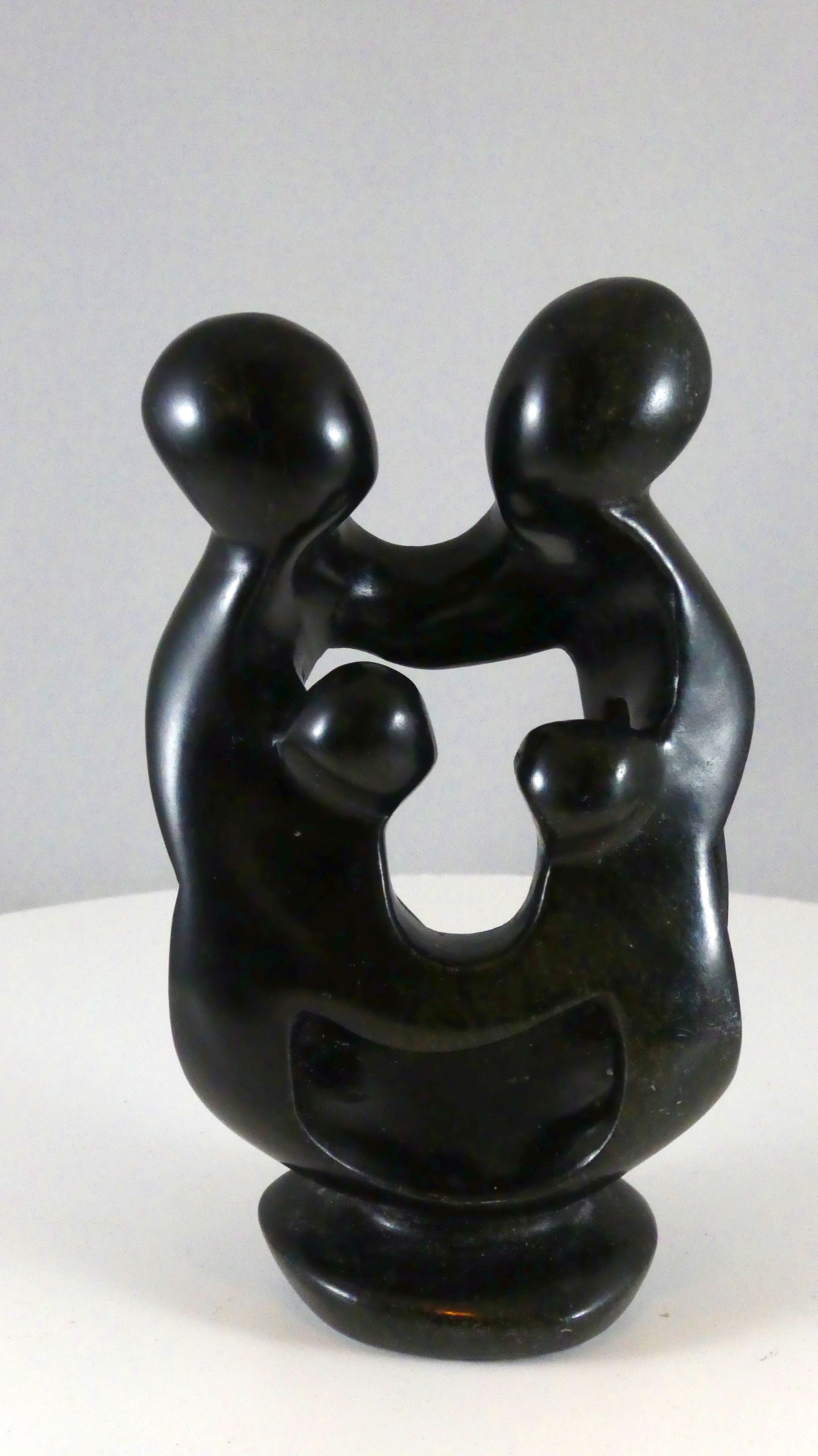 Stenen beeld, 4 personen, 13 cm hoog, familie, glad afgewerkt