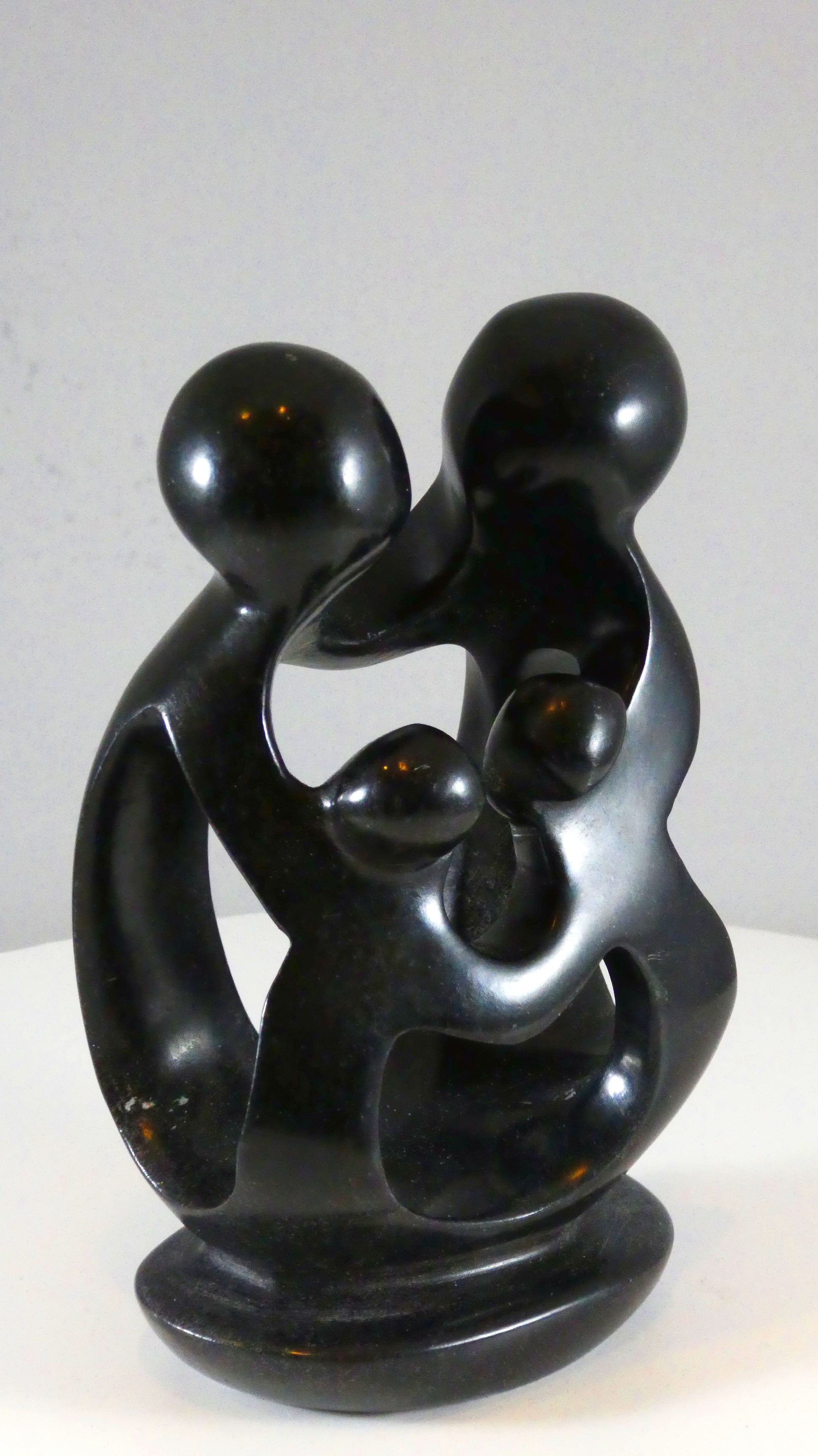 Stenen beeld, 4 personen, 15 cm hoog, familie, glad afgewerkt