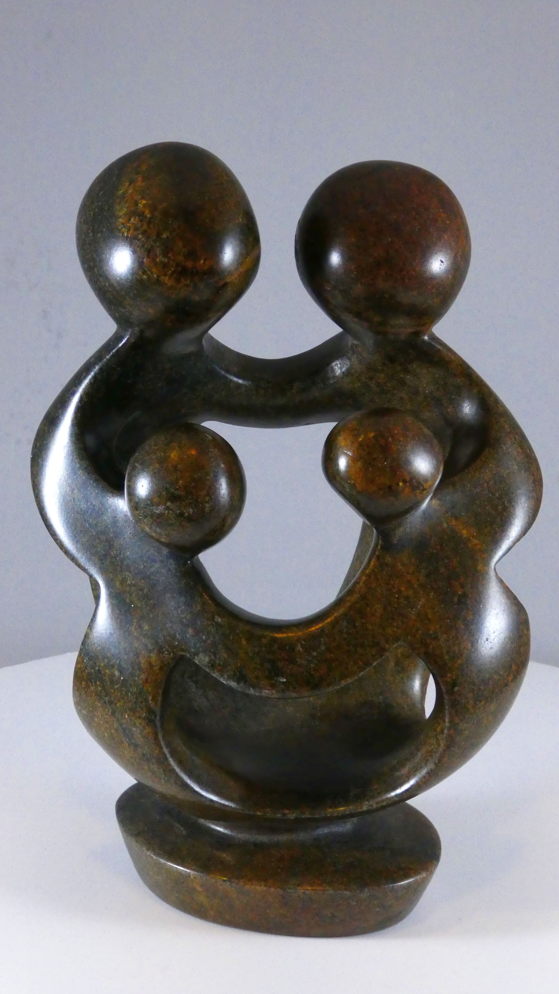 Stenen beeld, 4 personen, 19 cm hoog, familie, glad afgewerkt