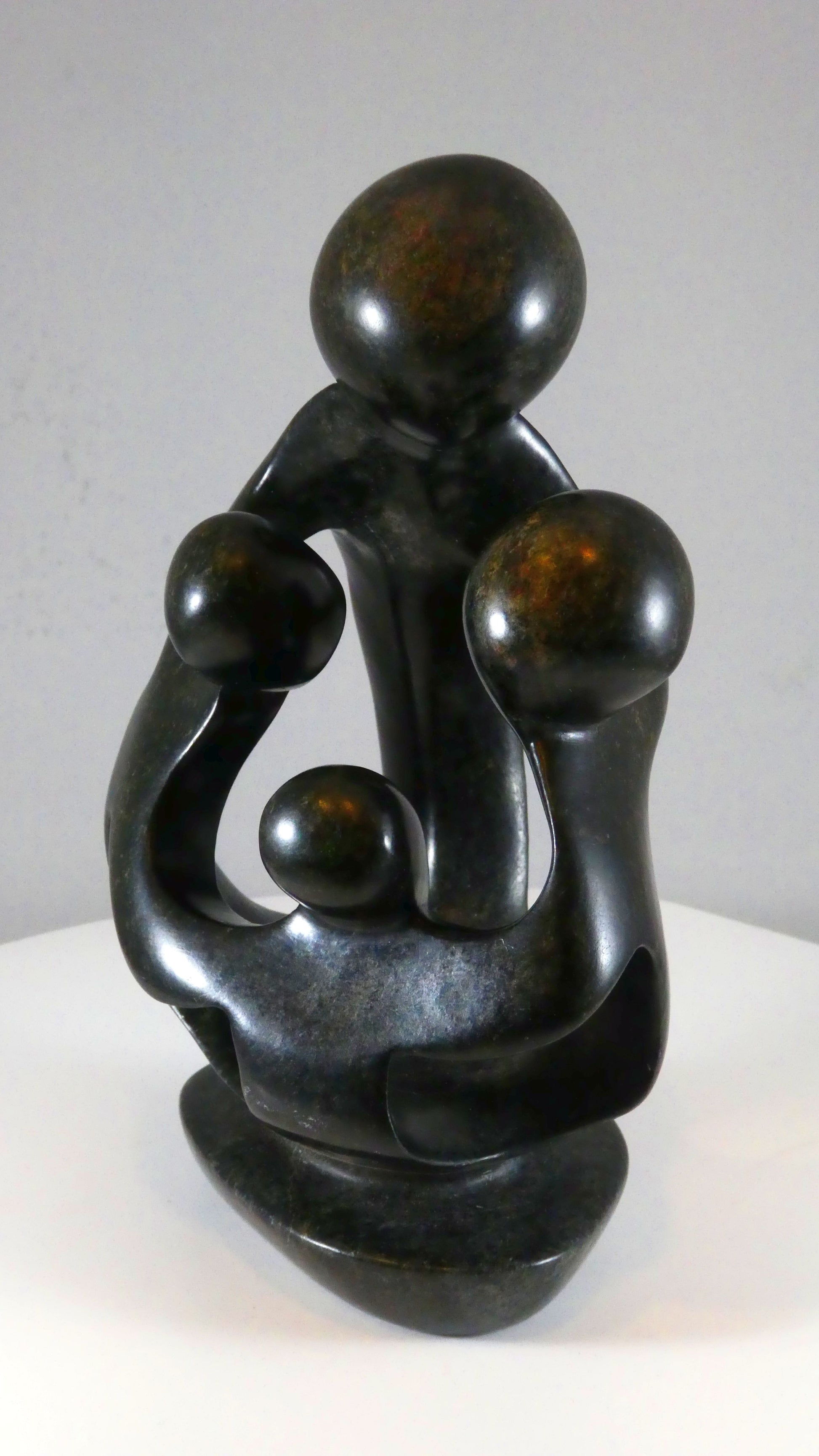 Stenen beeld, 4 personen, 19 cm hoog, familie, glad afgewerkt