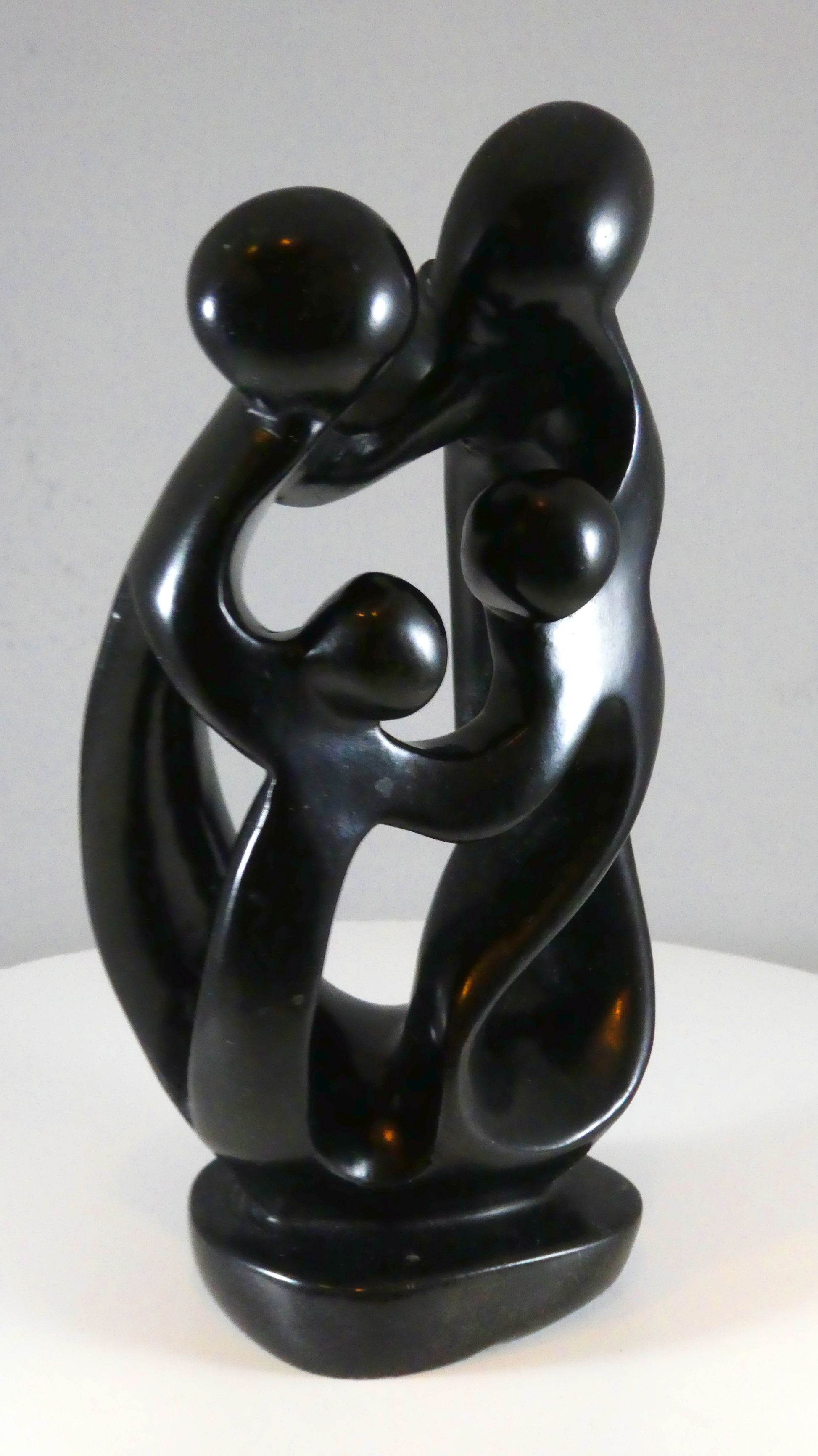 Stenen beeld, 4 personen, 20 cm hoog, familie, glad afgewerkt