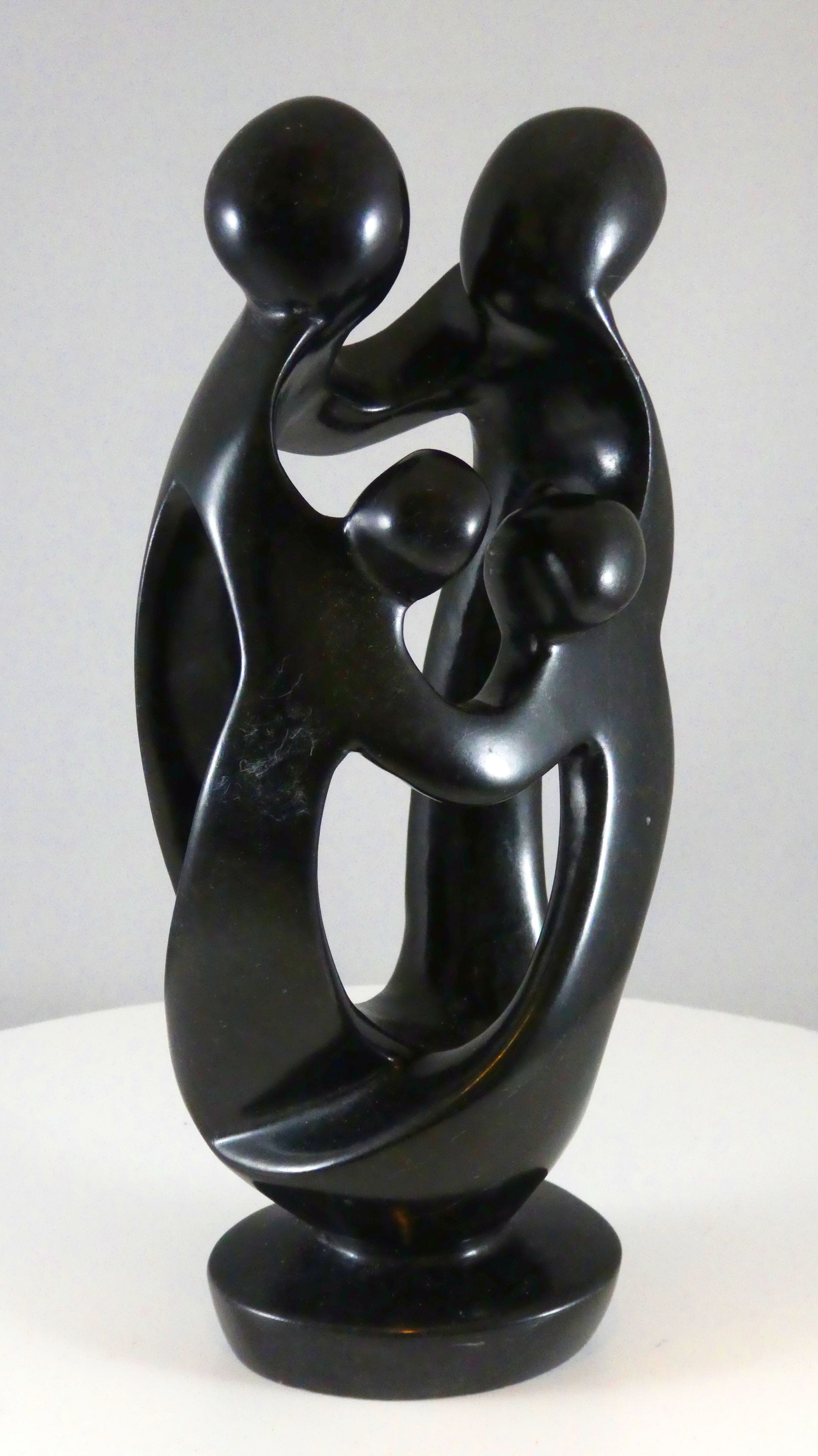 Stenen beeld, 4 personen, 21 cm hoog, familie, glad afgewerkt