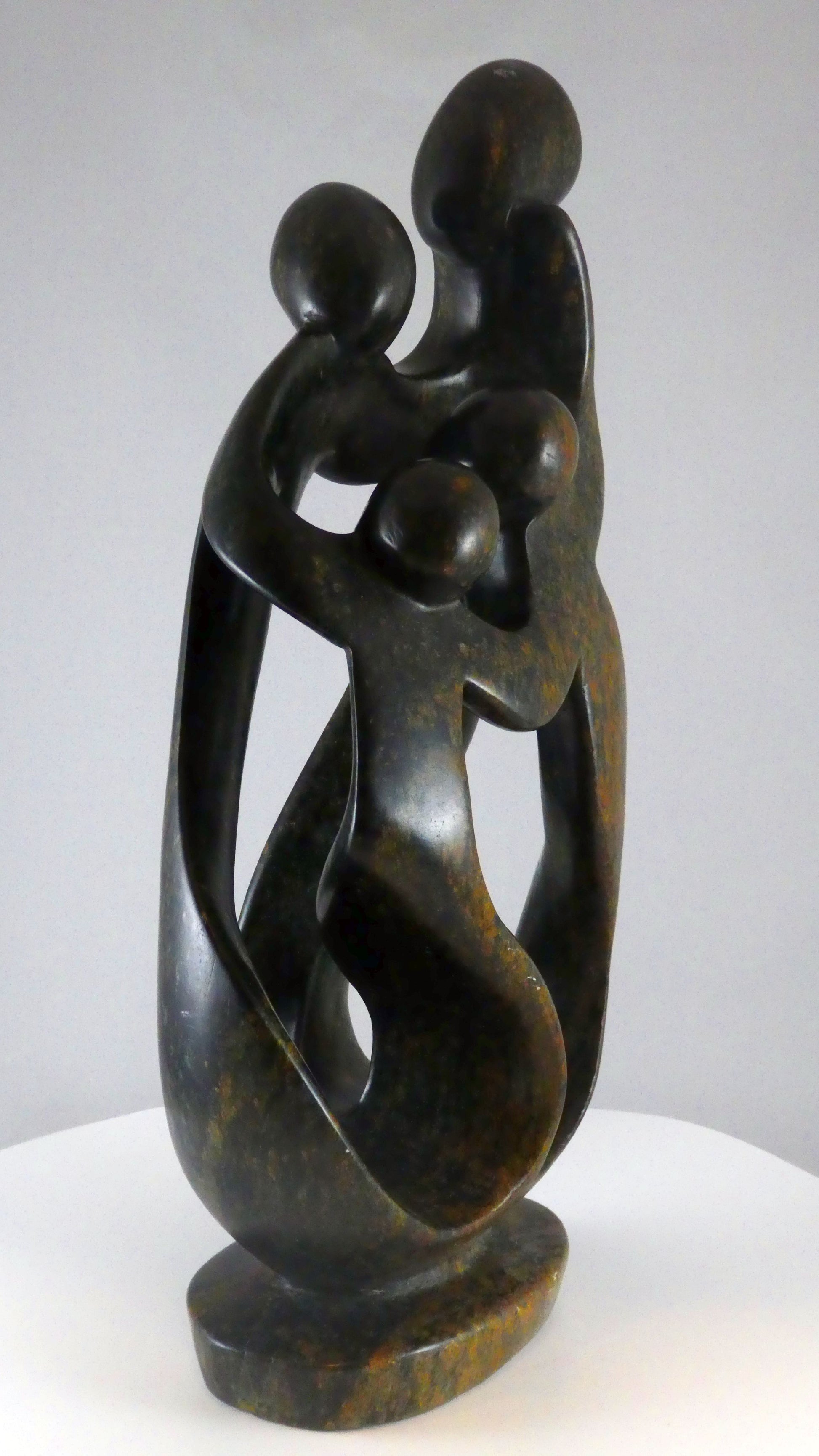 Stenen beeld, 4 personen, 31 cm hoog, familie, glad afgewerkt