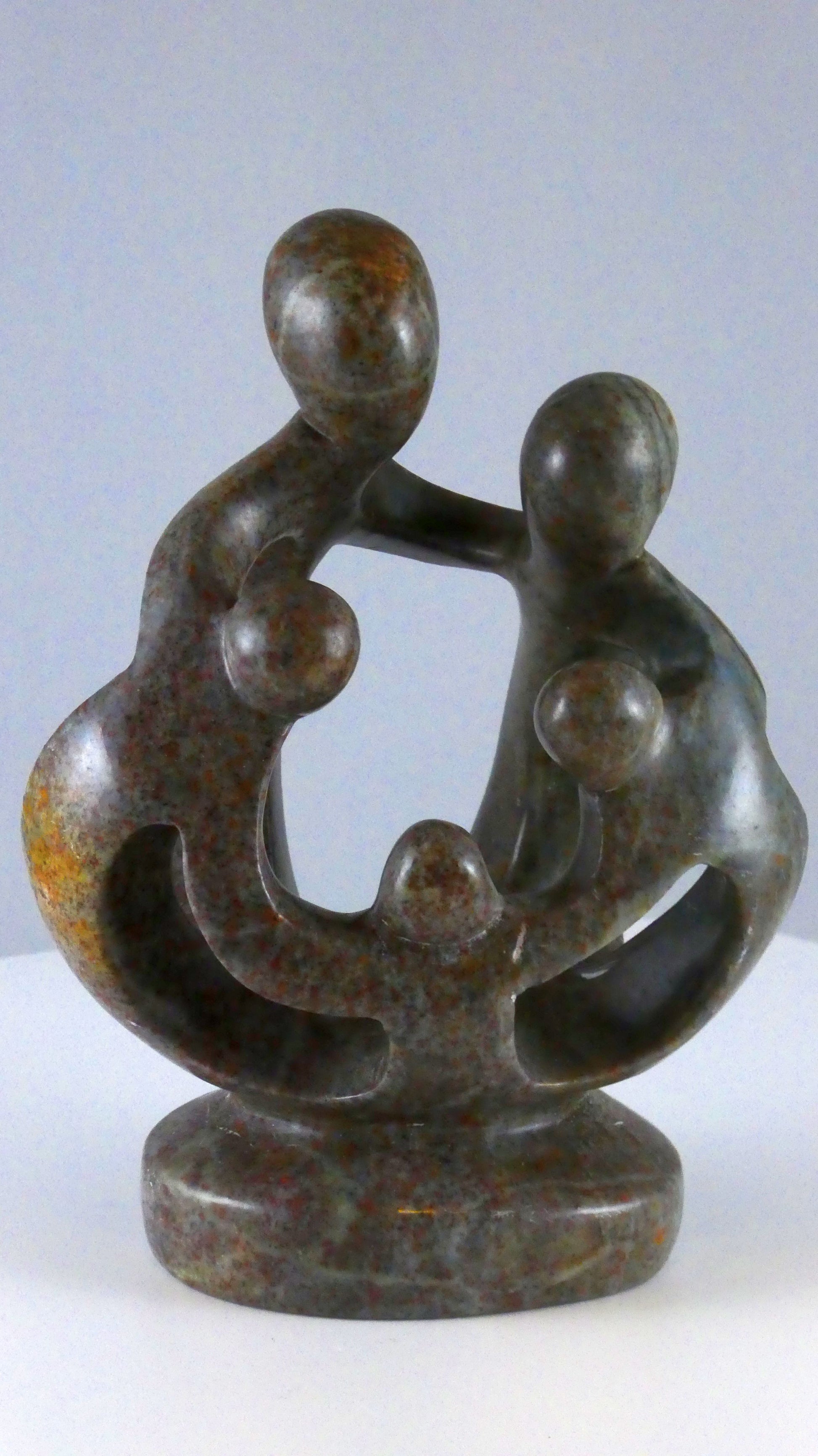 Stenen beeld, 5 personen, 15 cm hoog, familie, glad afgewerkt