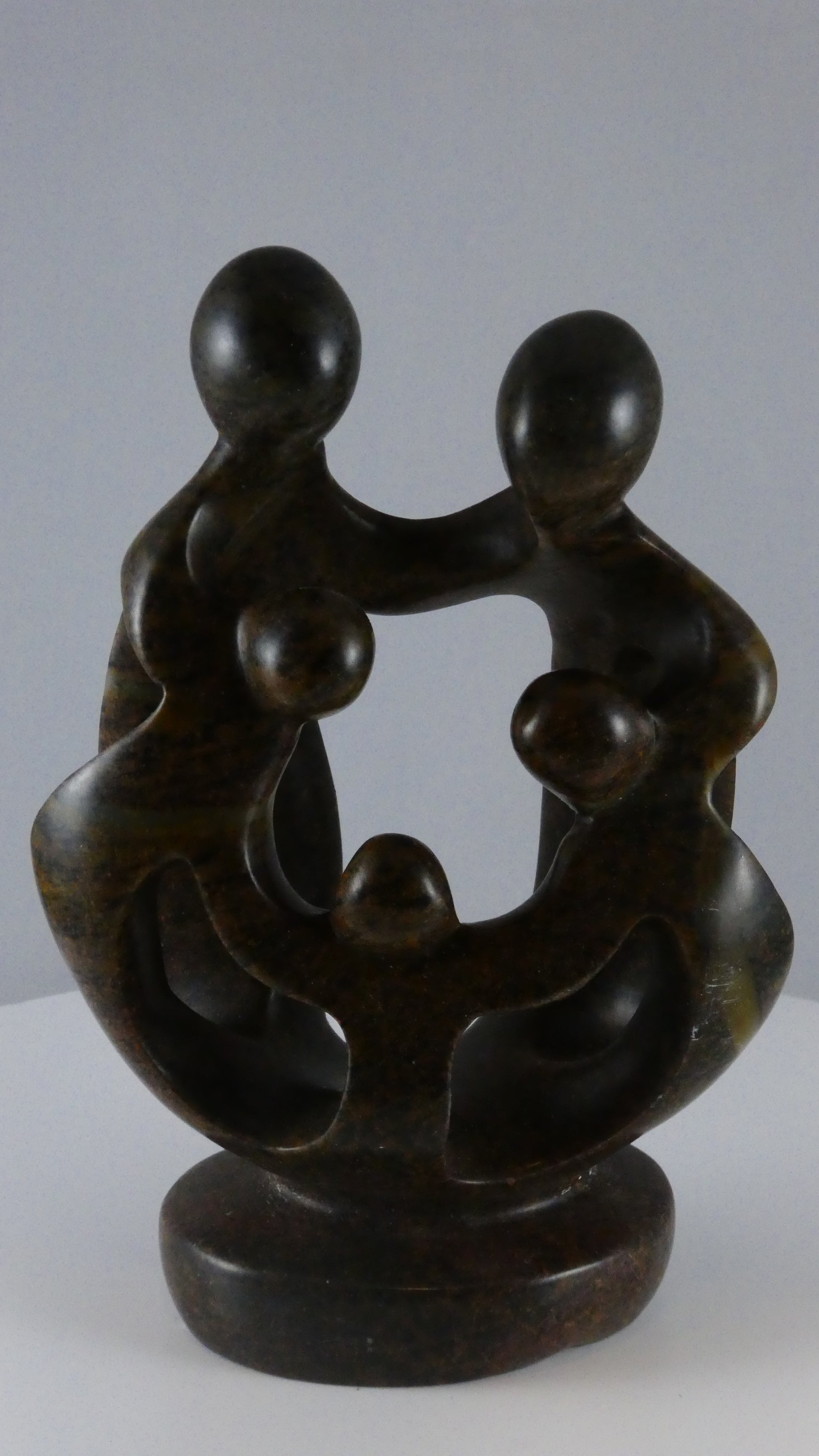 Stenen beeld, 5 personen, 17 cm hoog, familie, glad afgewerkt