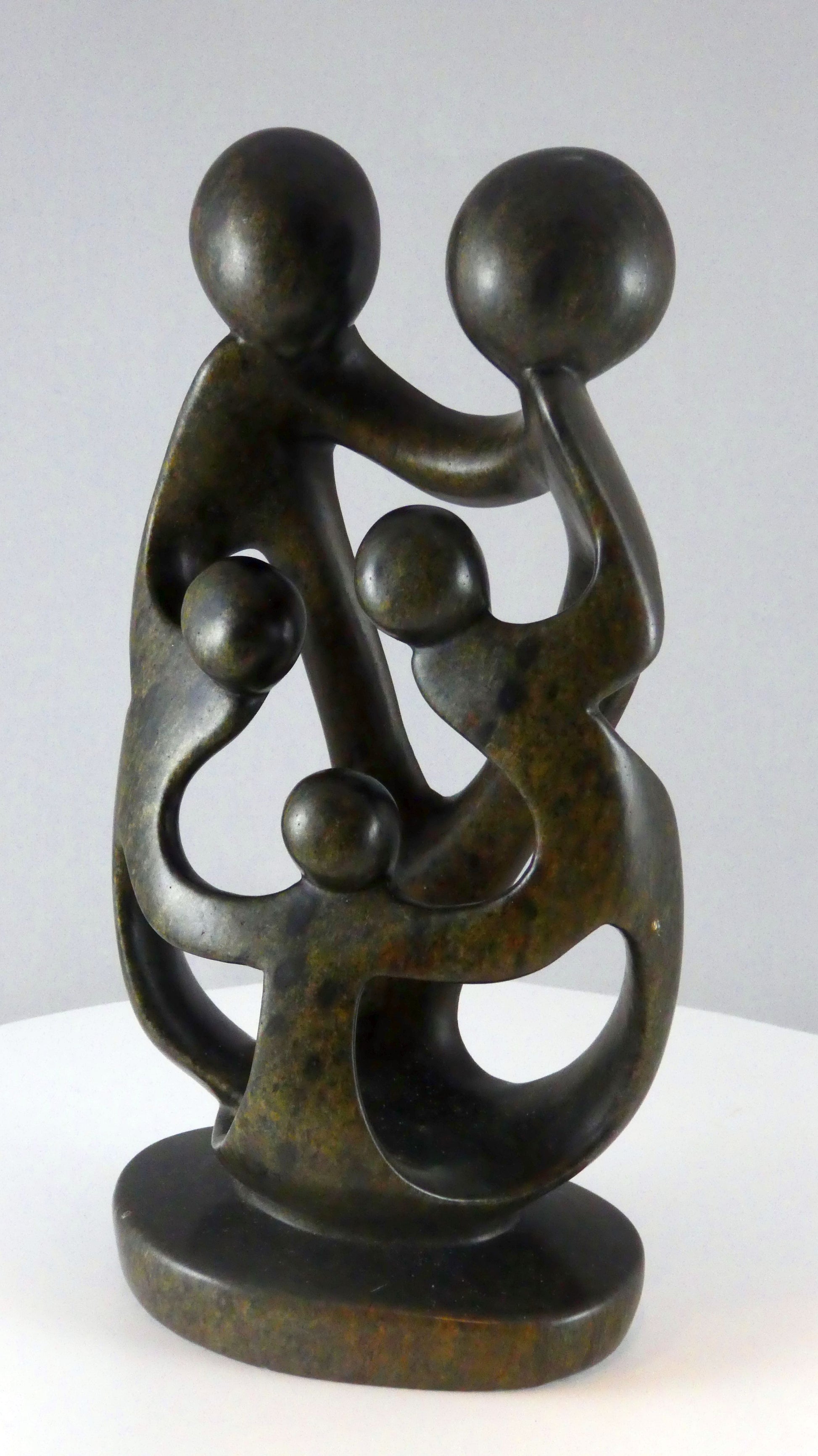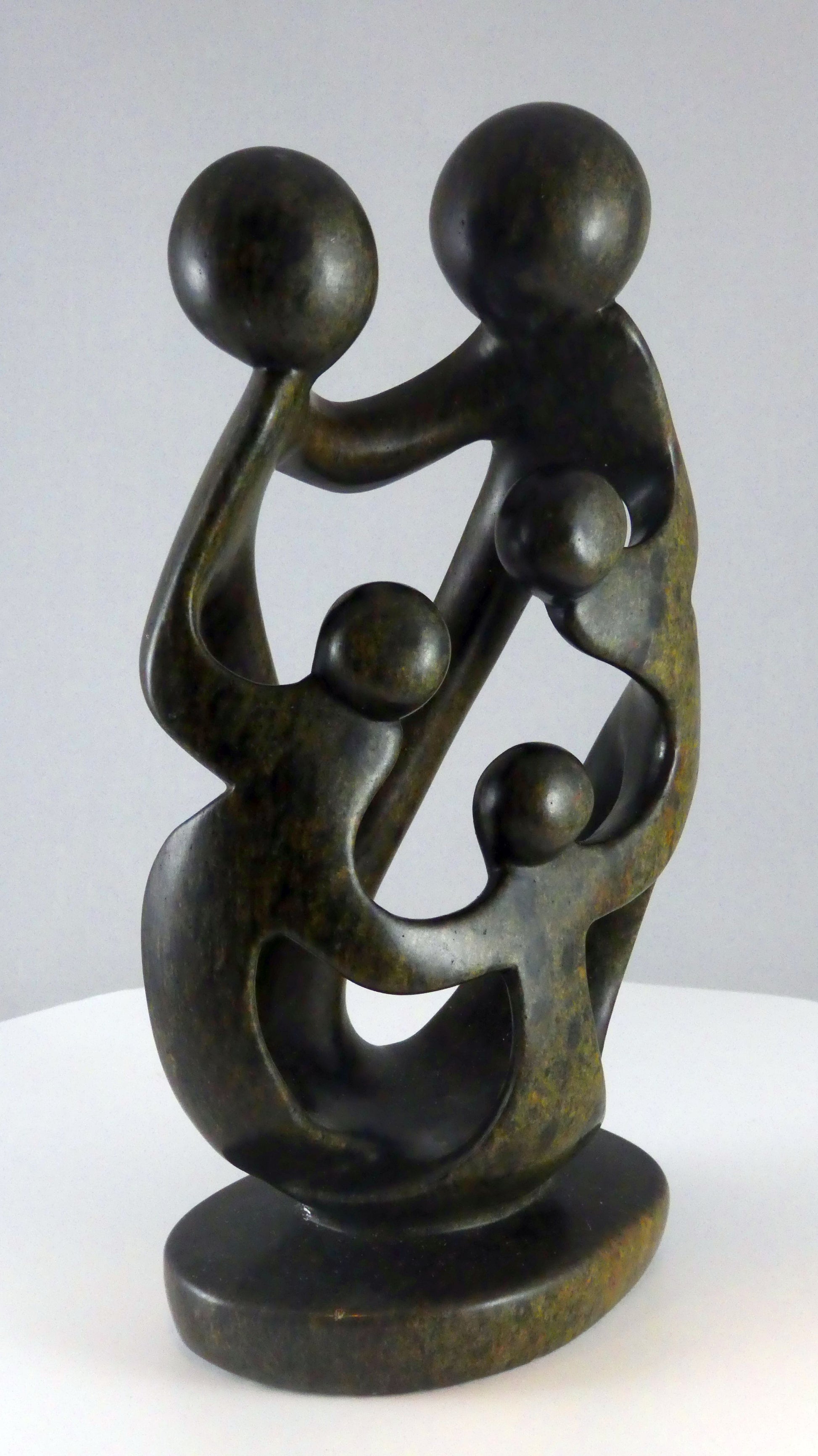 Stenen beeld, 5 personen, 21 cm hoog, familie, glad afgewerkt