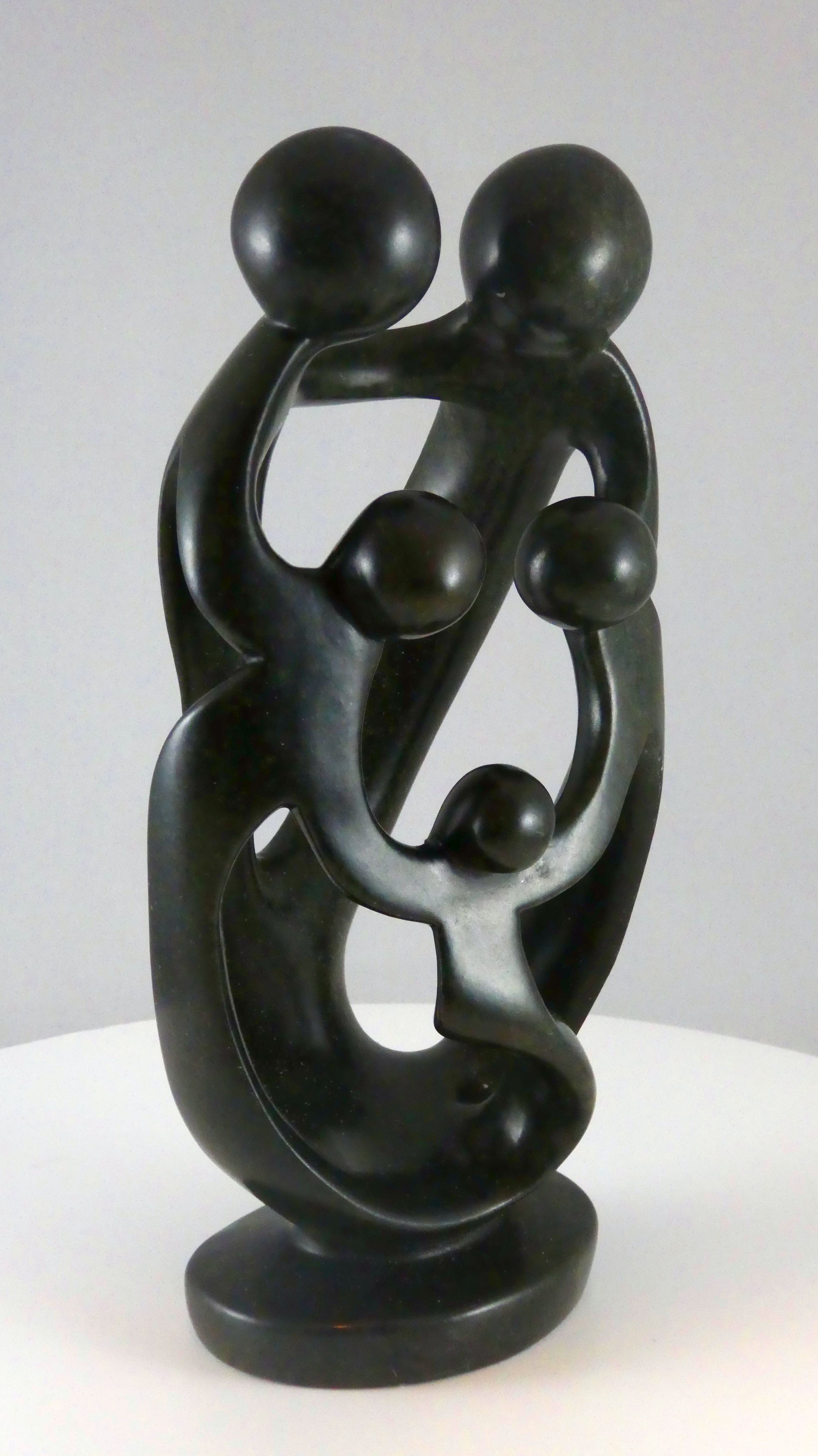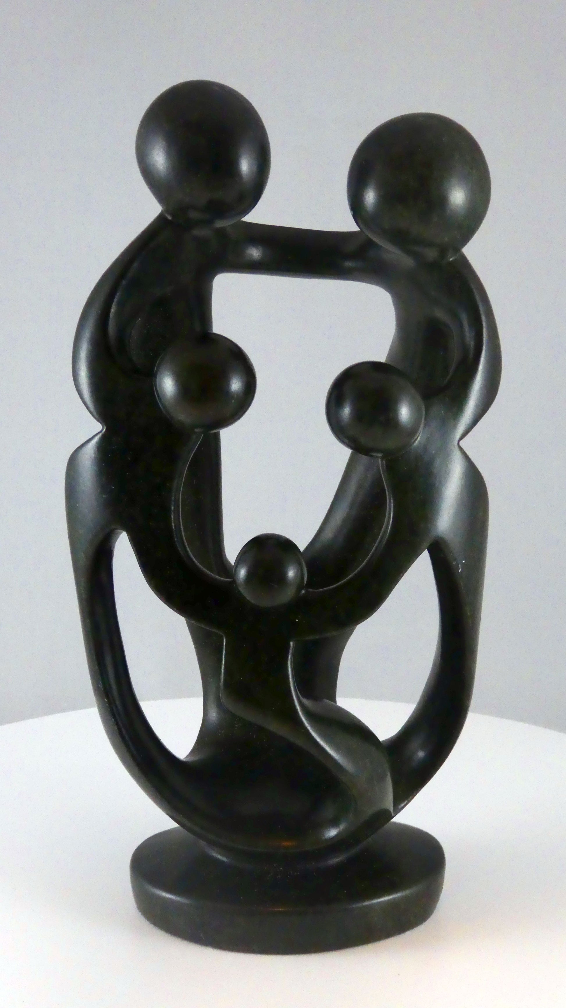 Stenen beeld, 5 personen, 22 cm hoog, familie, glad afgewerkt
