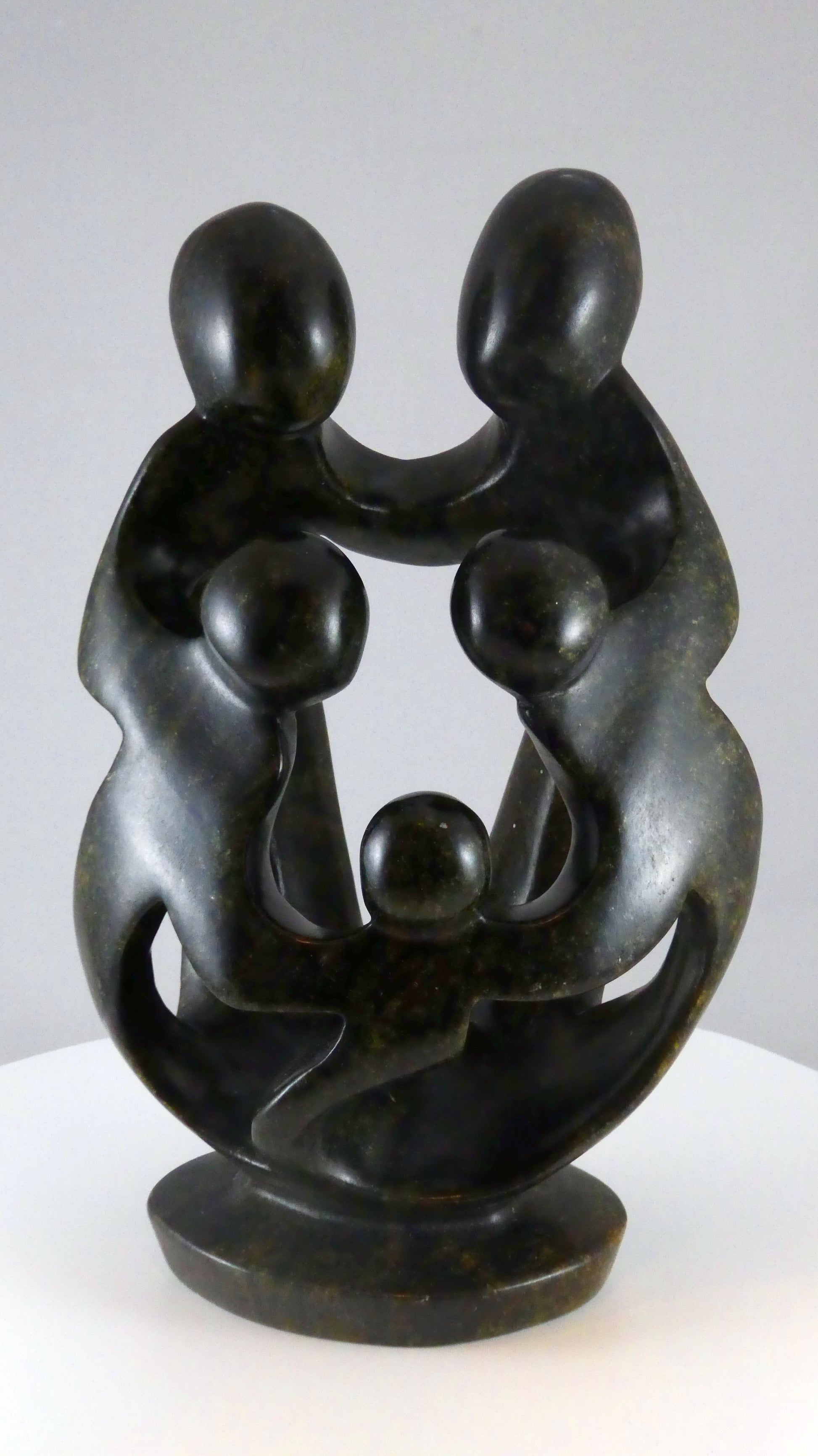 Stenen beeld, 5 personen, 24 cm hoog, familie, glad afgewerkt