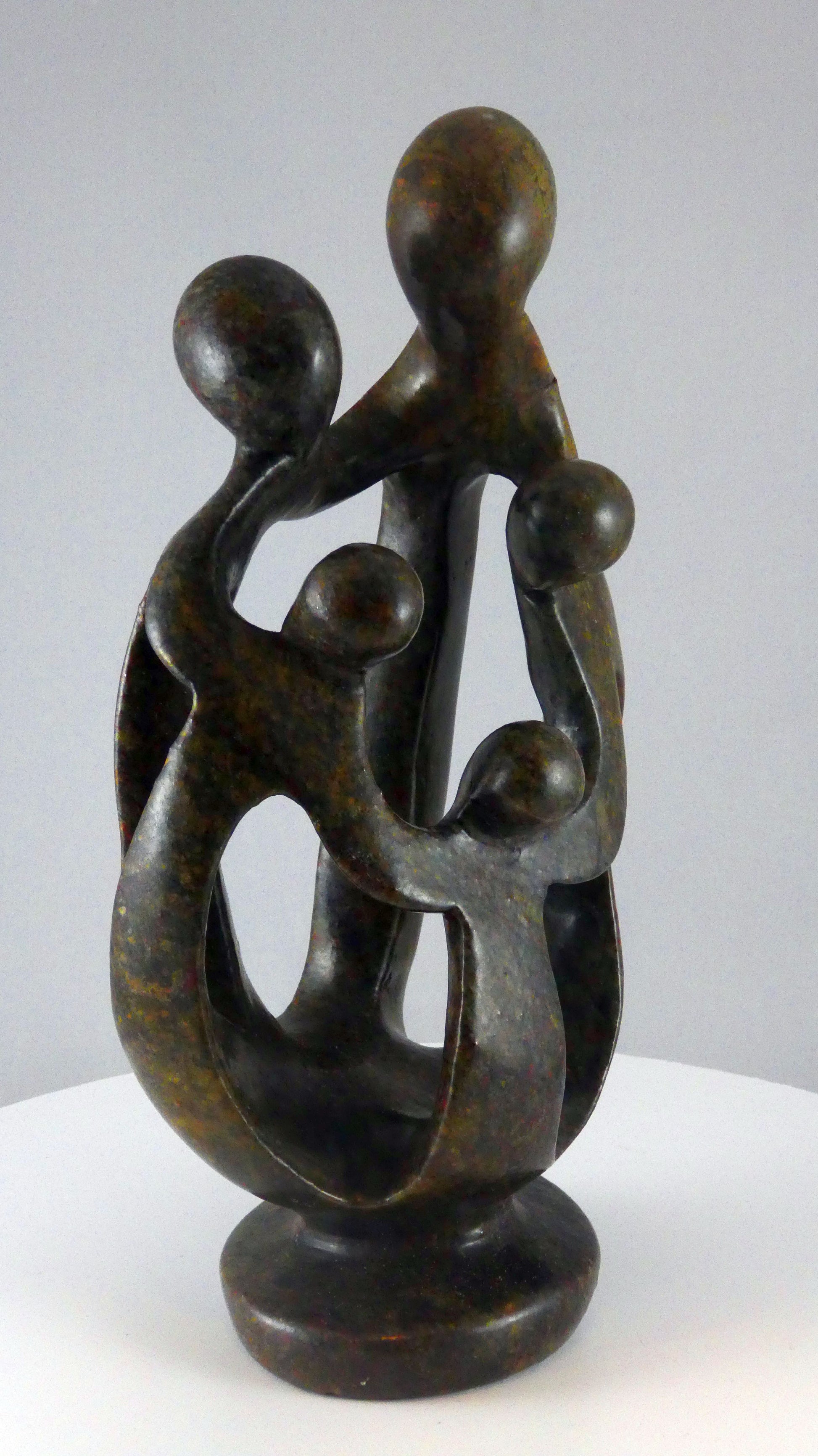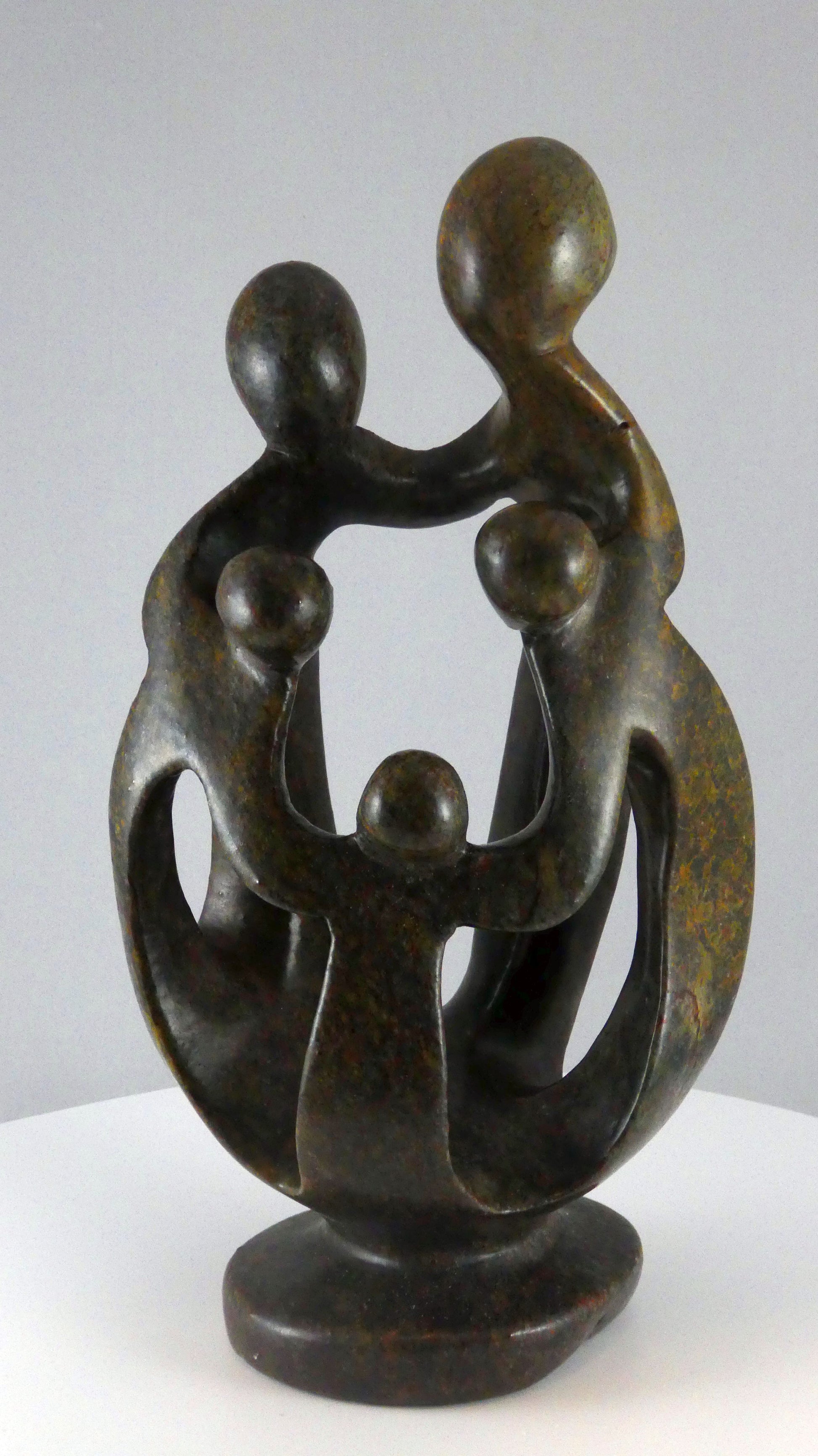 Stenen beeld, 5 personen, 25 cm hoog, familie, glad afgewerkt