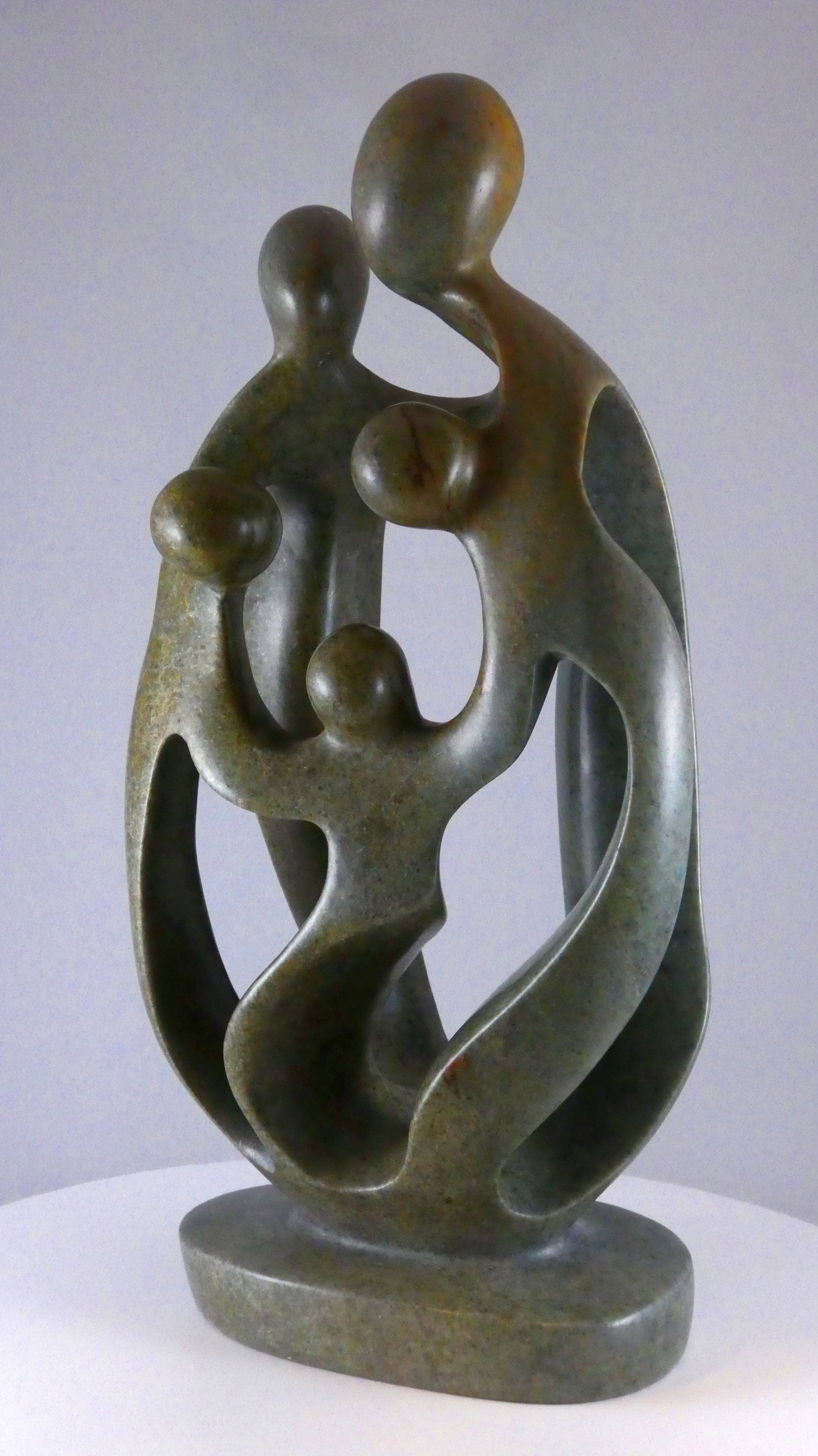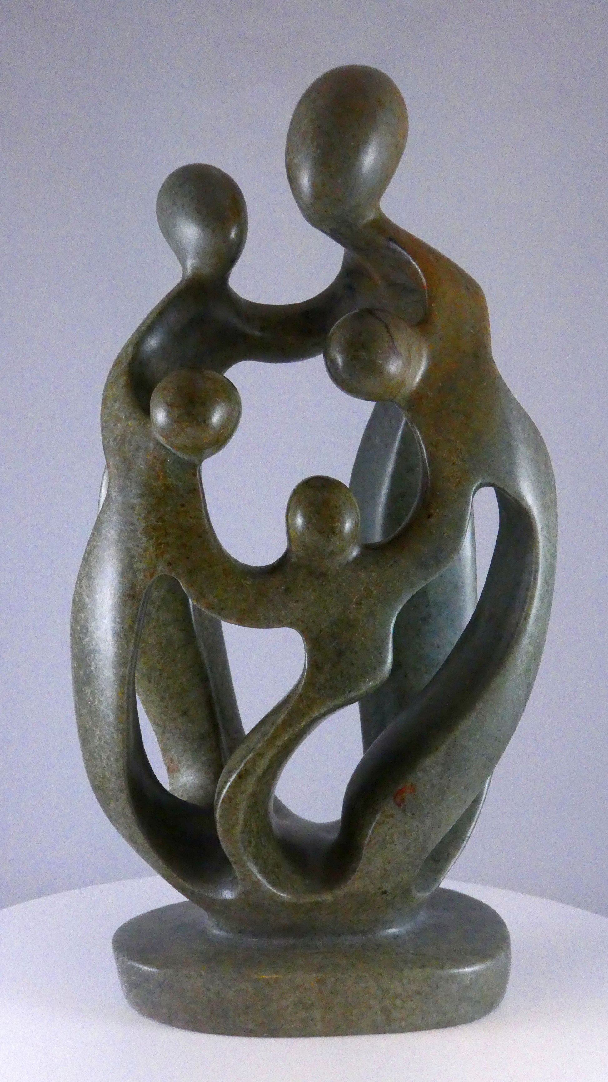 Stenen beeld, 5 personen, familie, glad afgewerkt