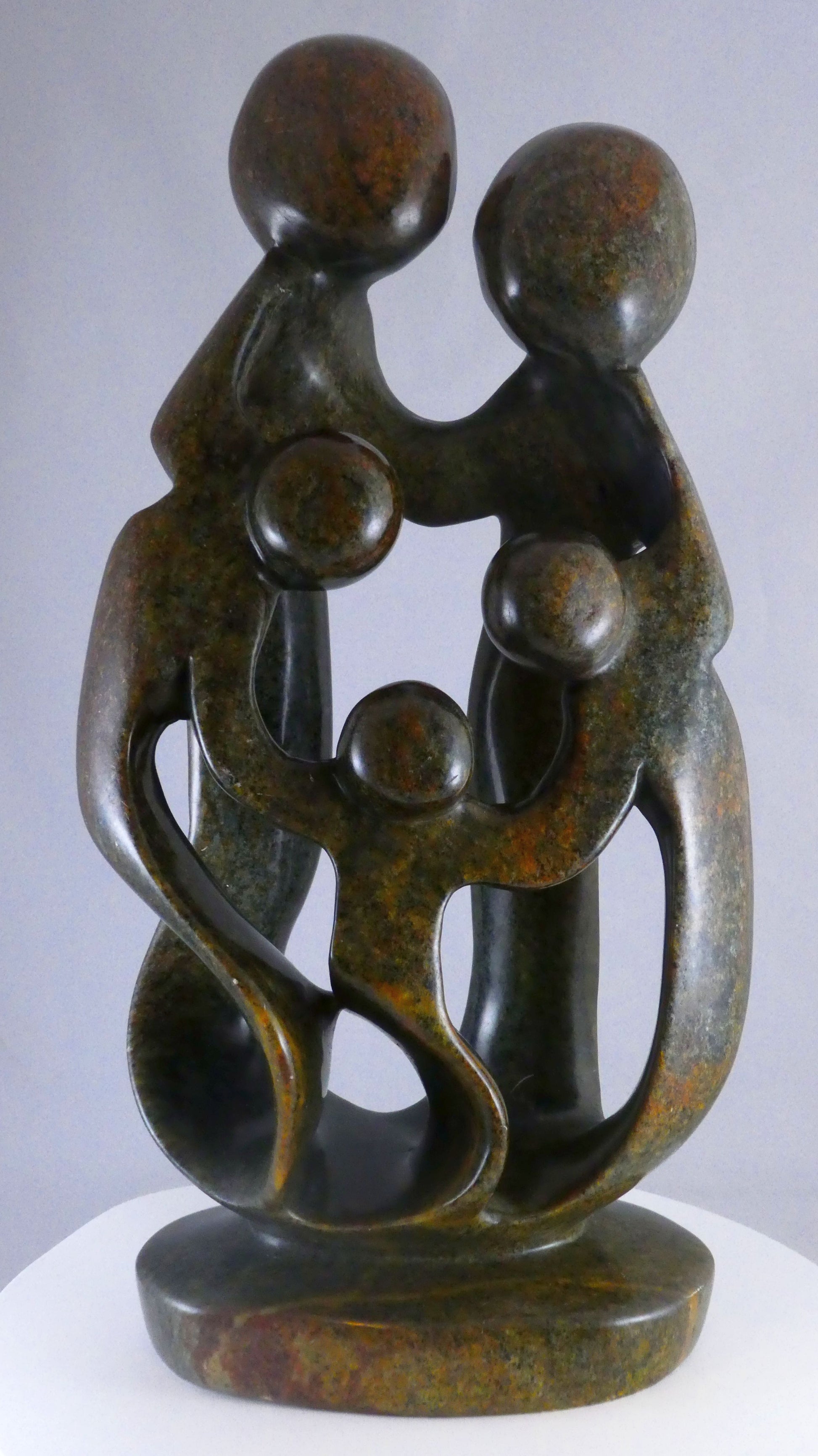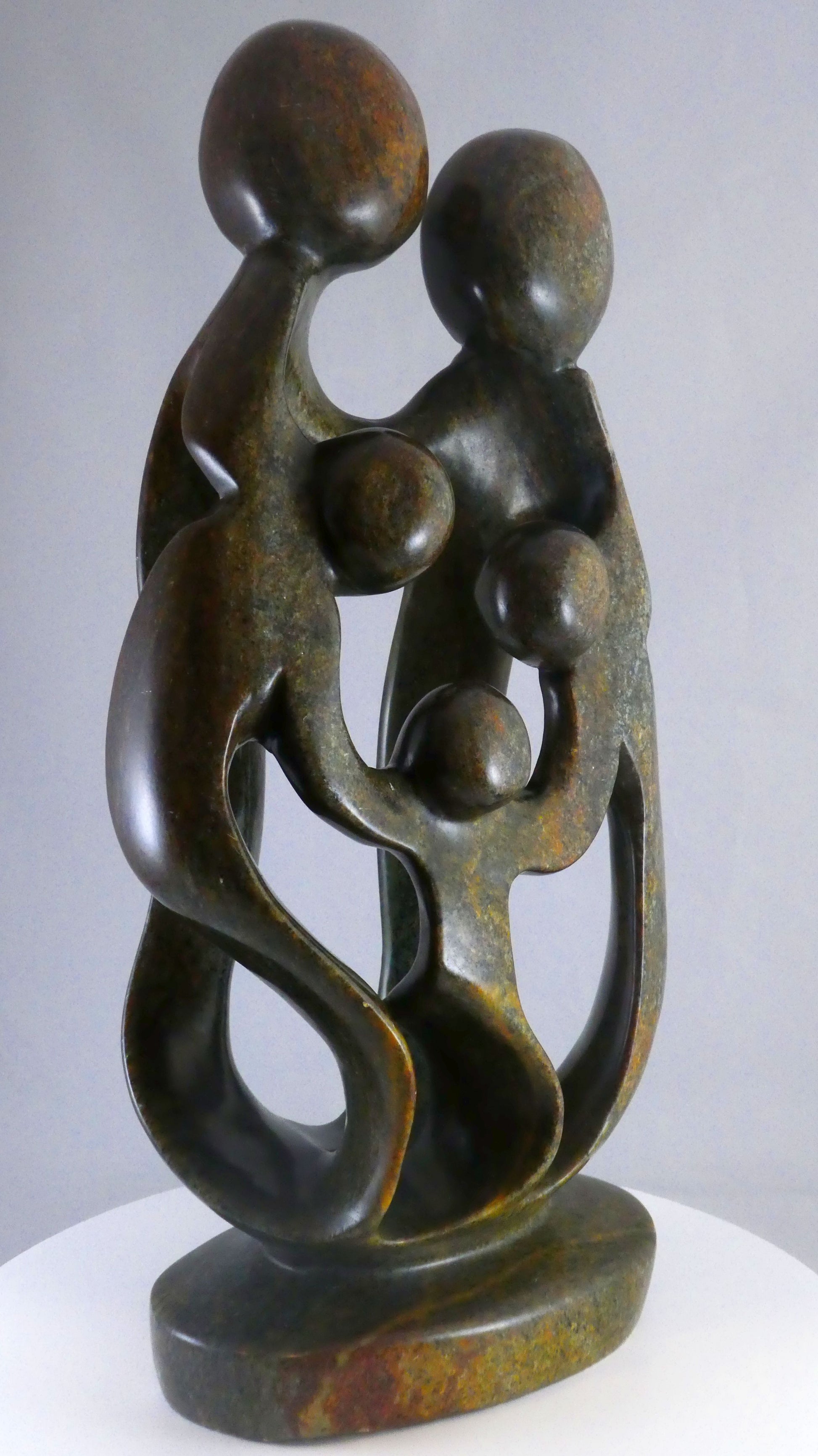 Stenen beeld, 5 personen, 41 cm hoog, familie, glad afgewerkt