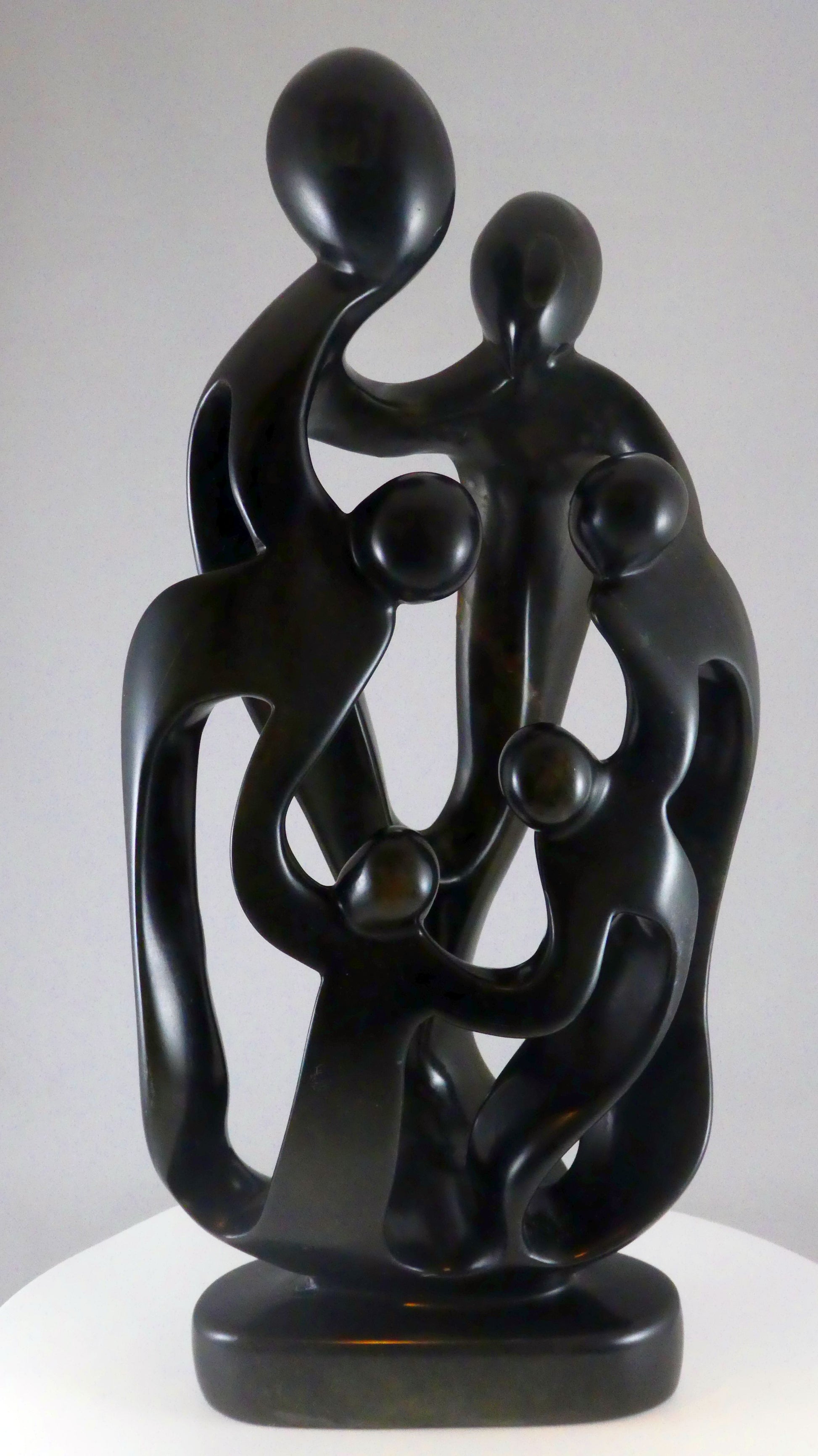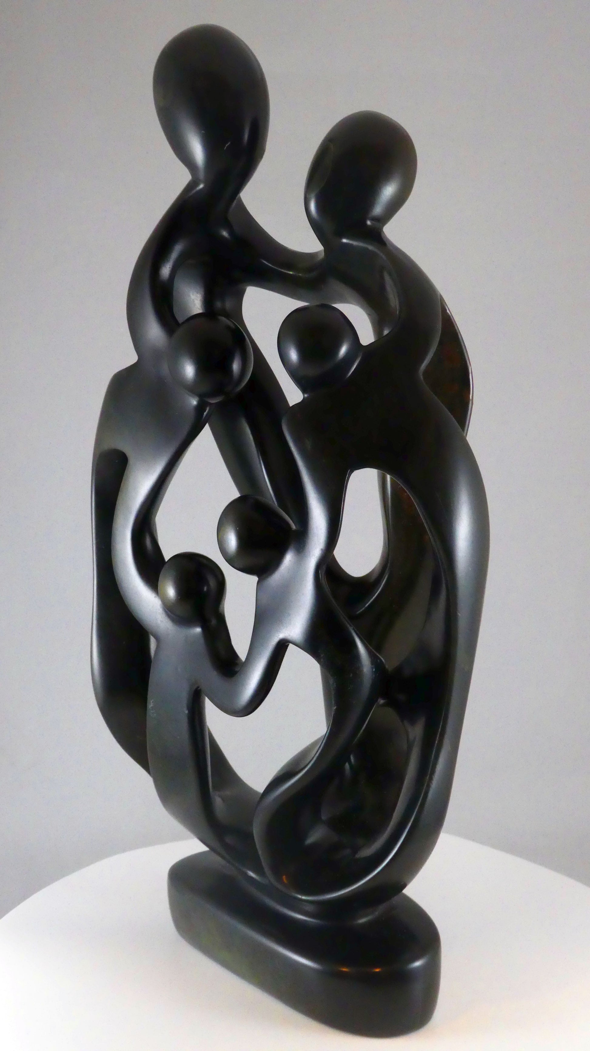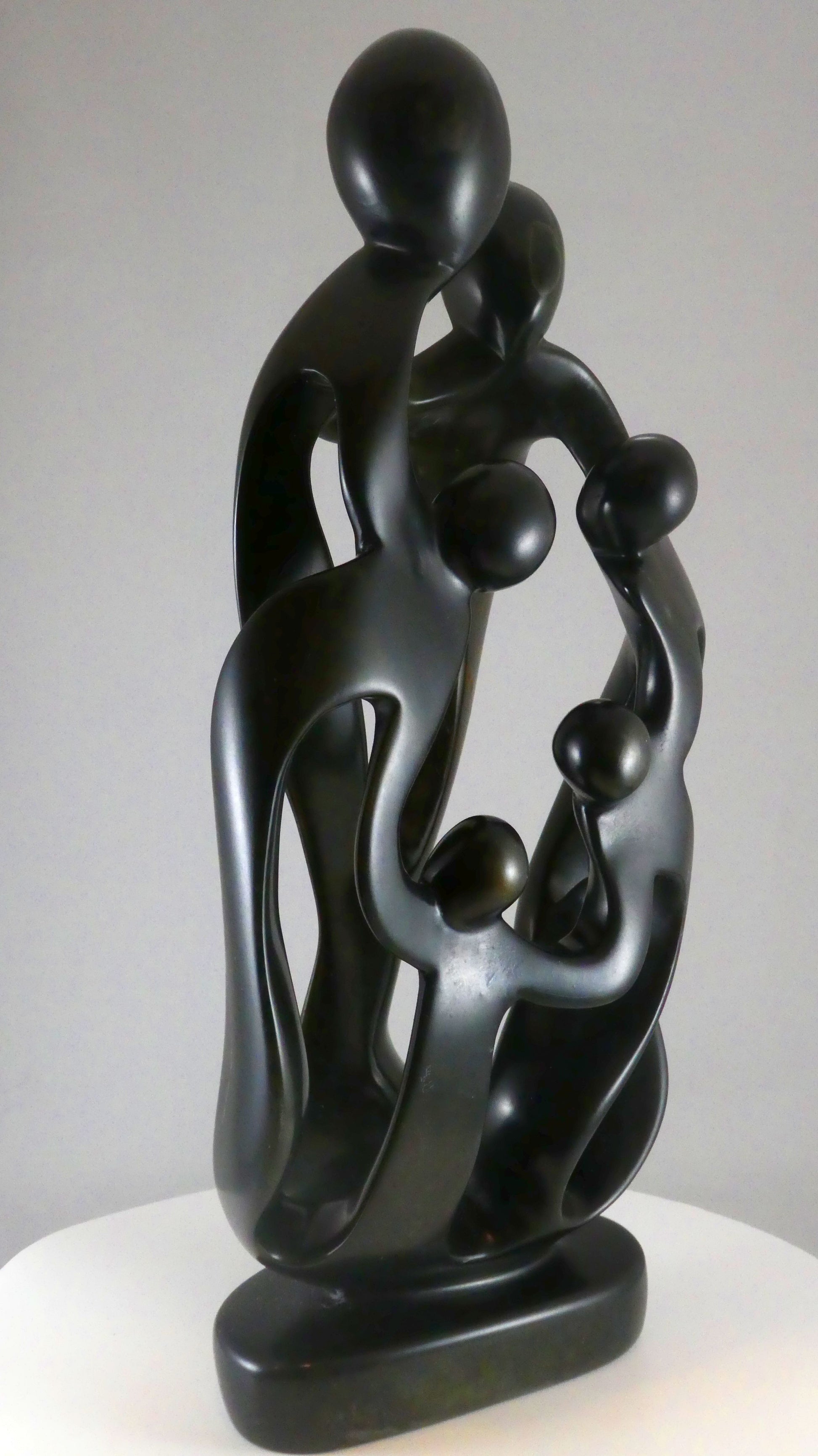 Stenen beeld, 6 personen, 39 cm hoog, familie, glad afgewerkt