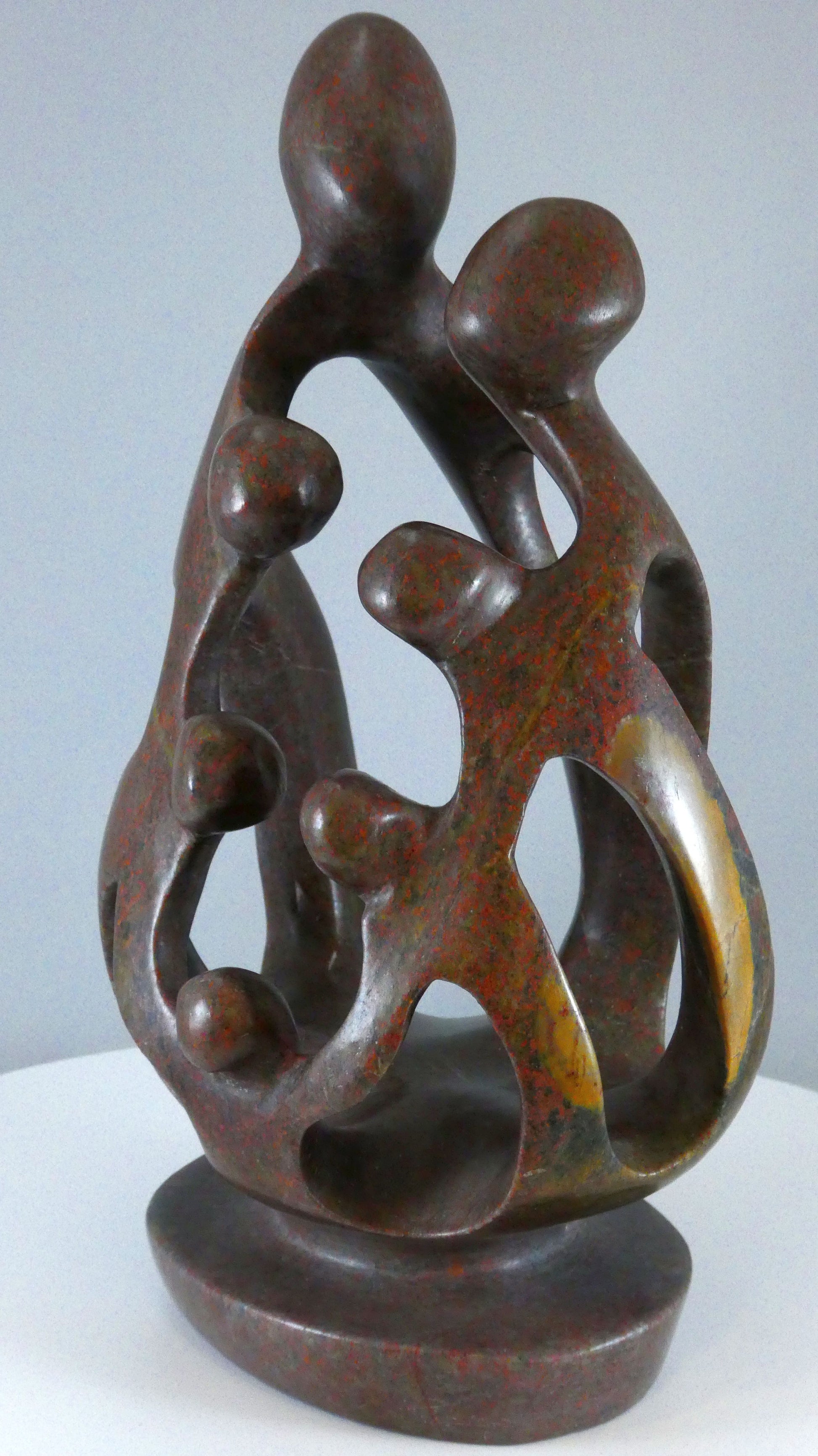Stenen beeld, 7 personen, 25 cm hoog, familie, glad afgewerkt