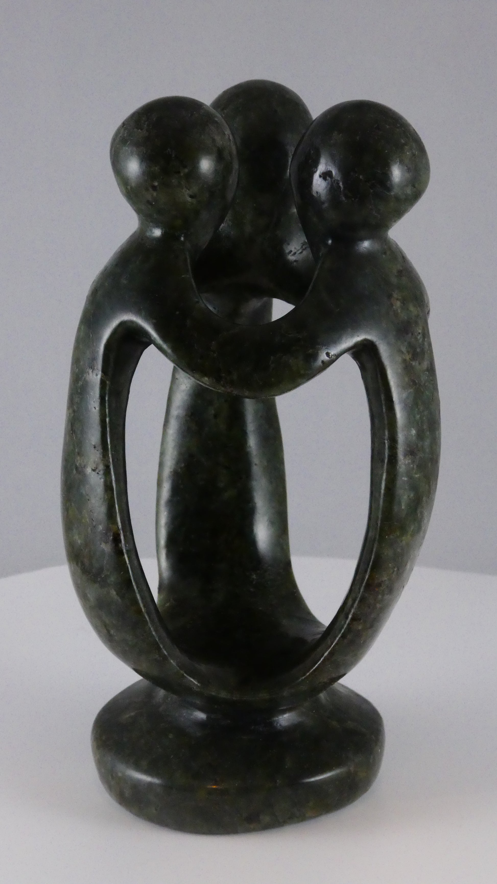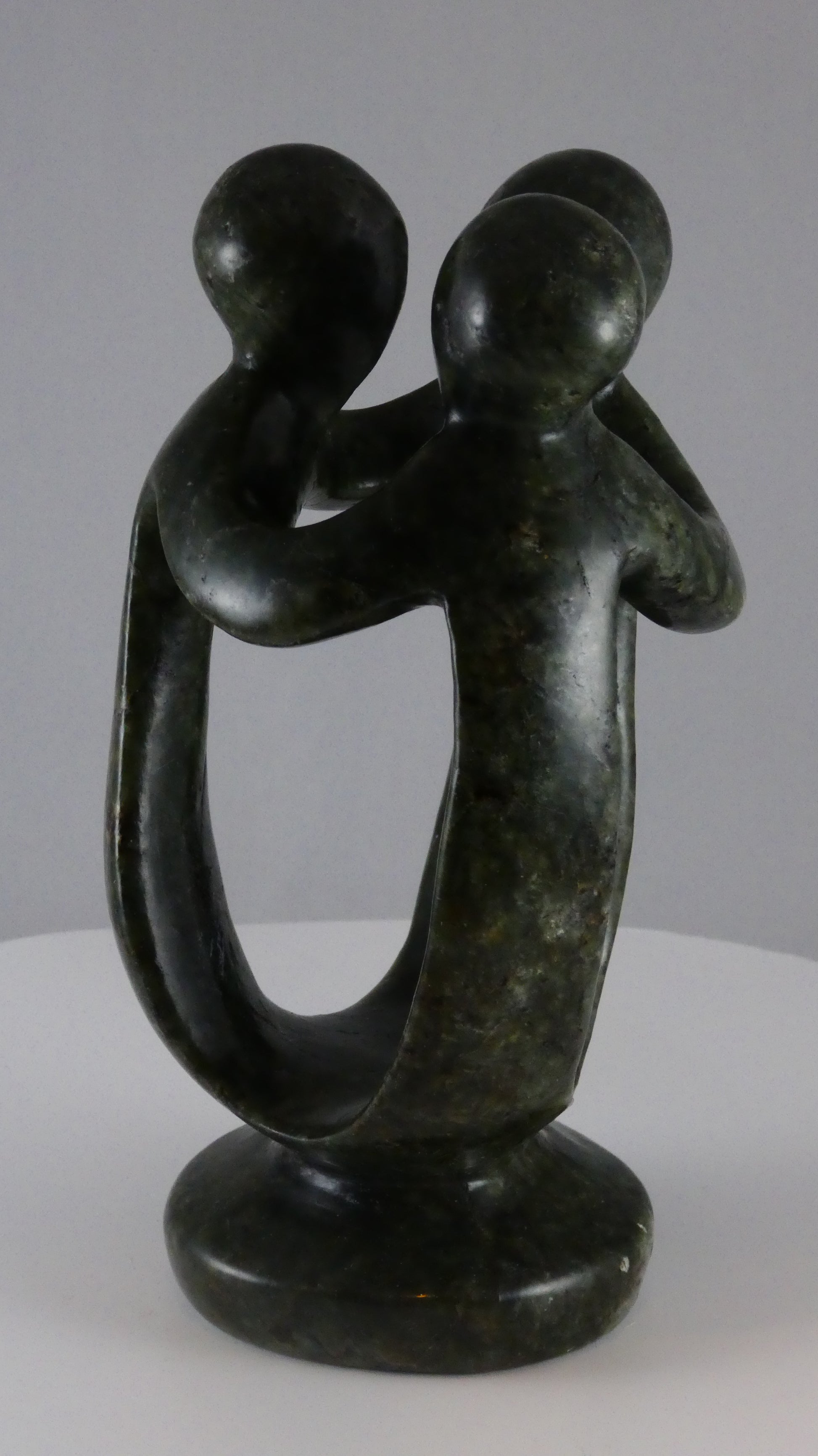 Stenen beeld, groep van 3 personen, 17 cm hoog, volledig glad afgewerkt