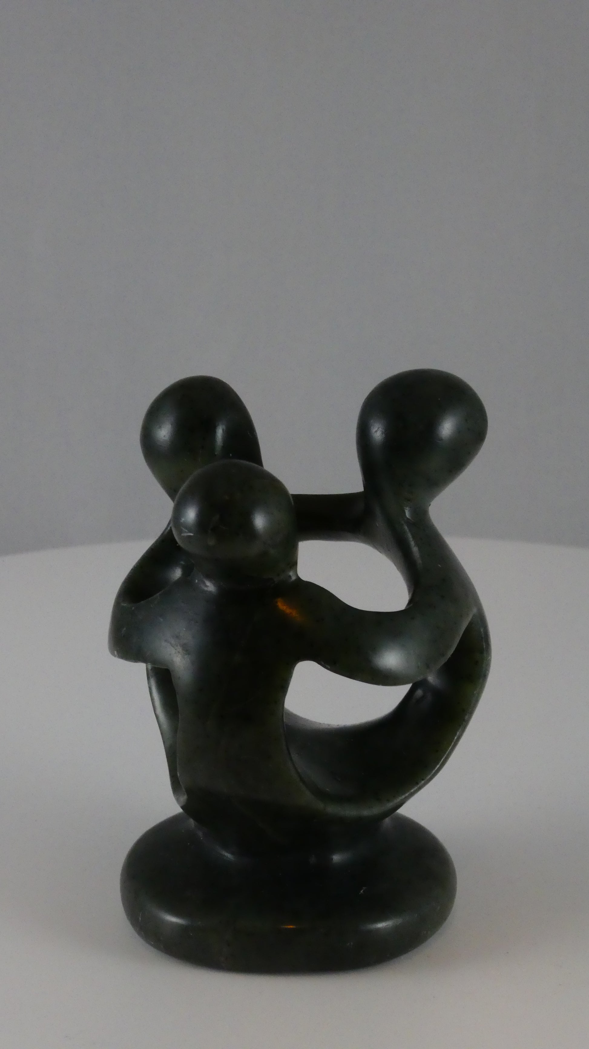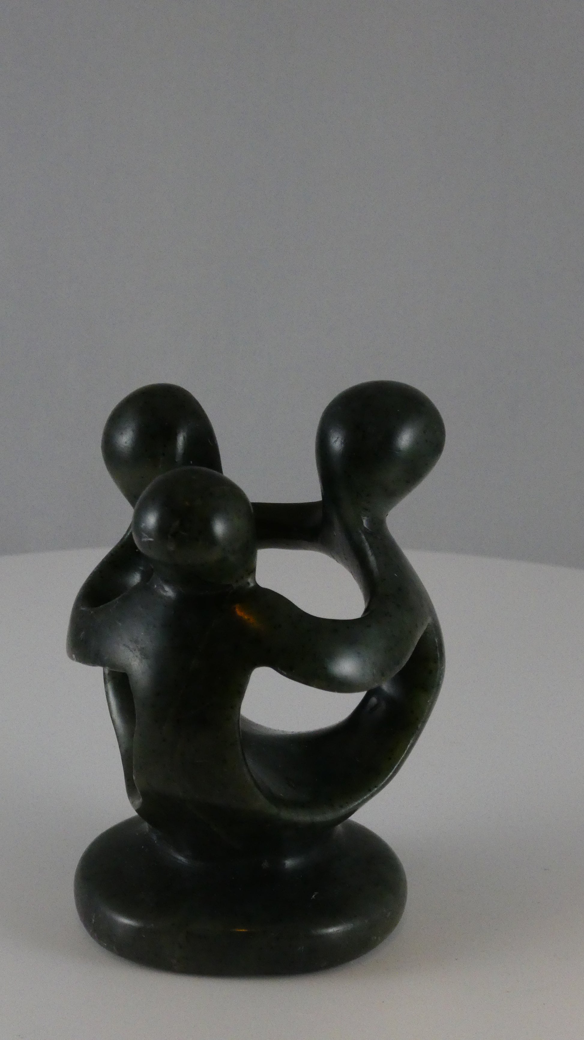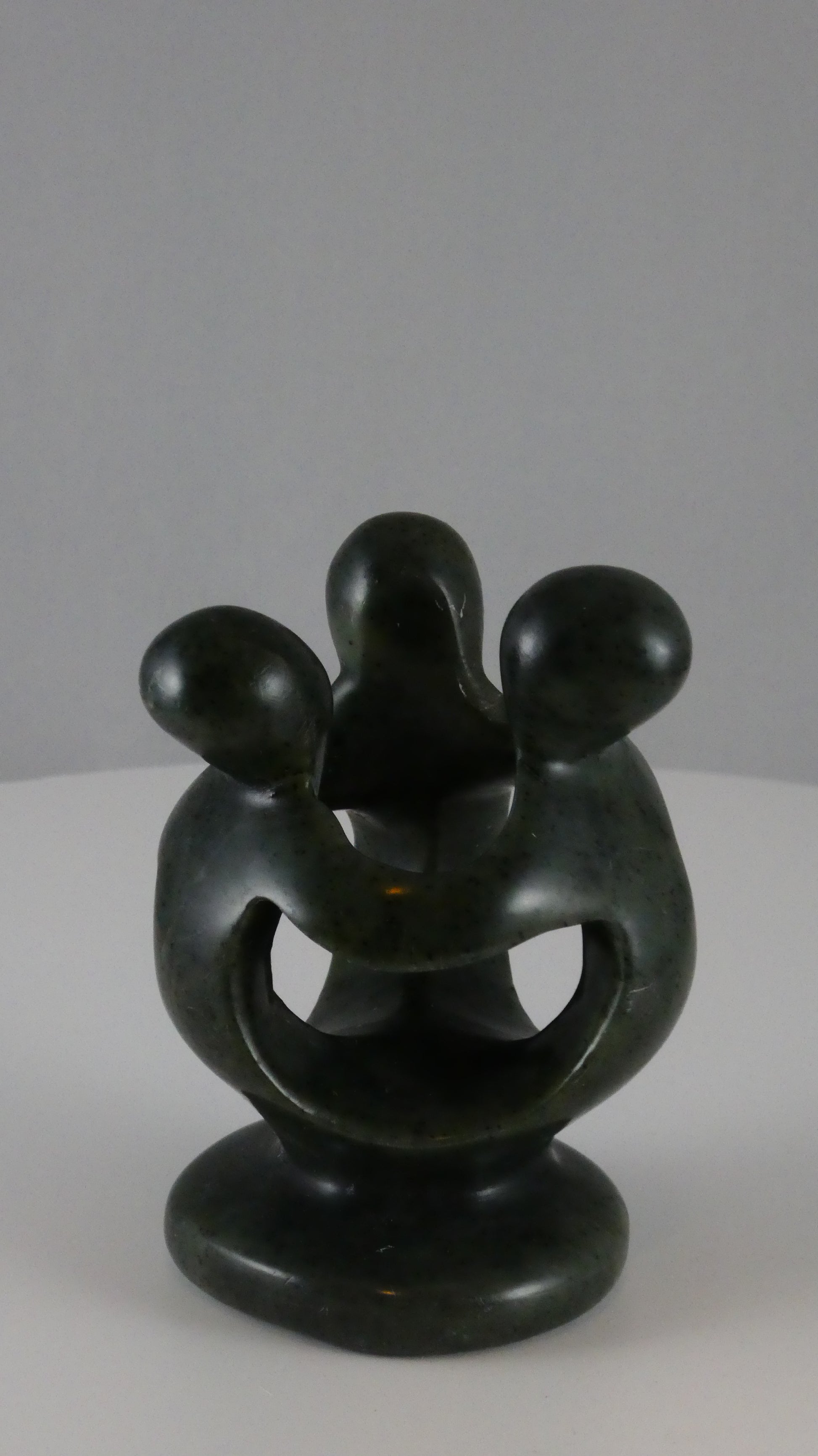 Stenen beeld, groep van 3 personen, 8 cm hoog, volledig glad afgewerkt
