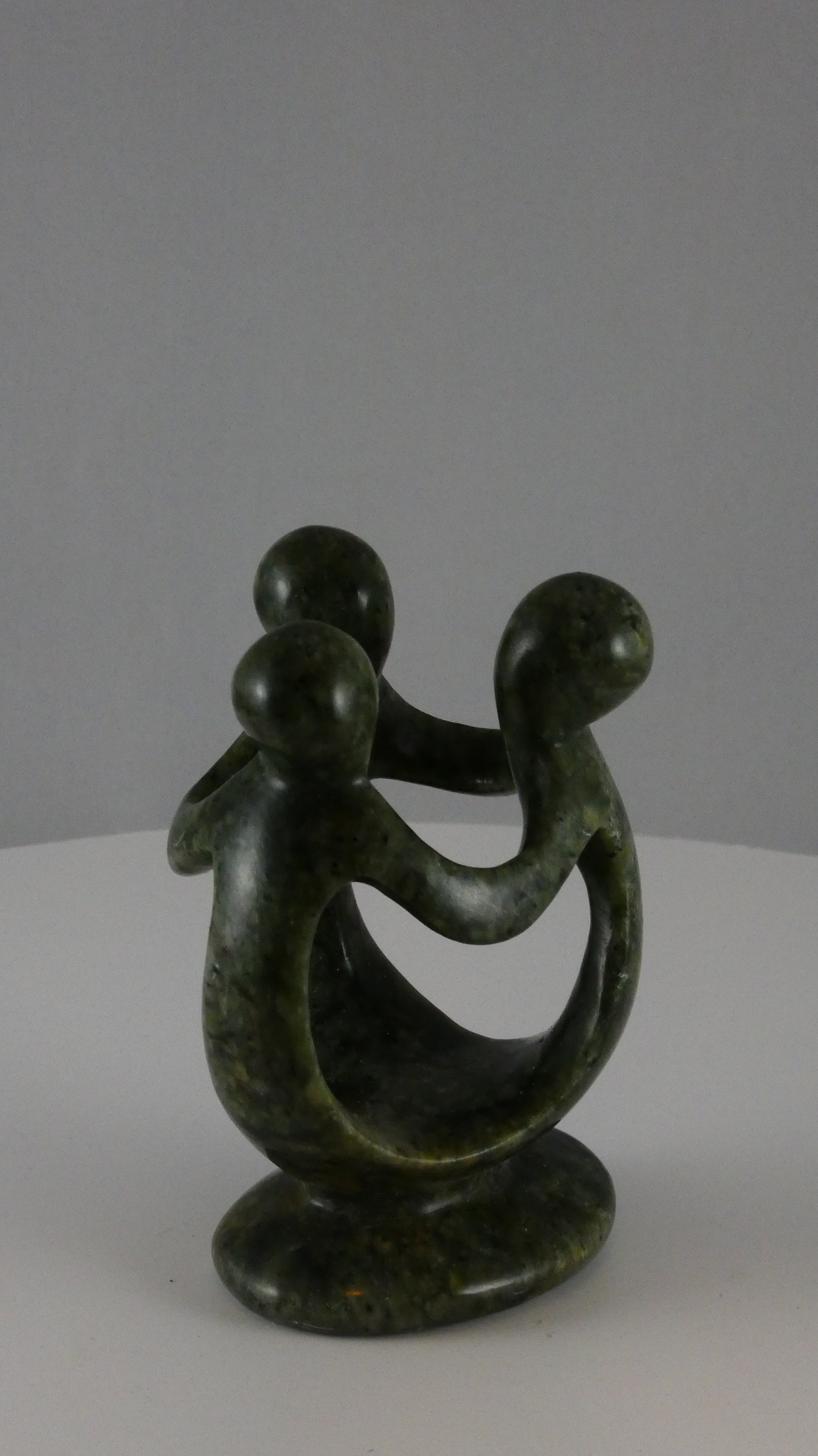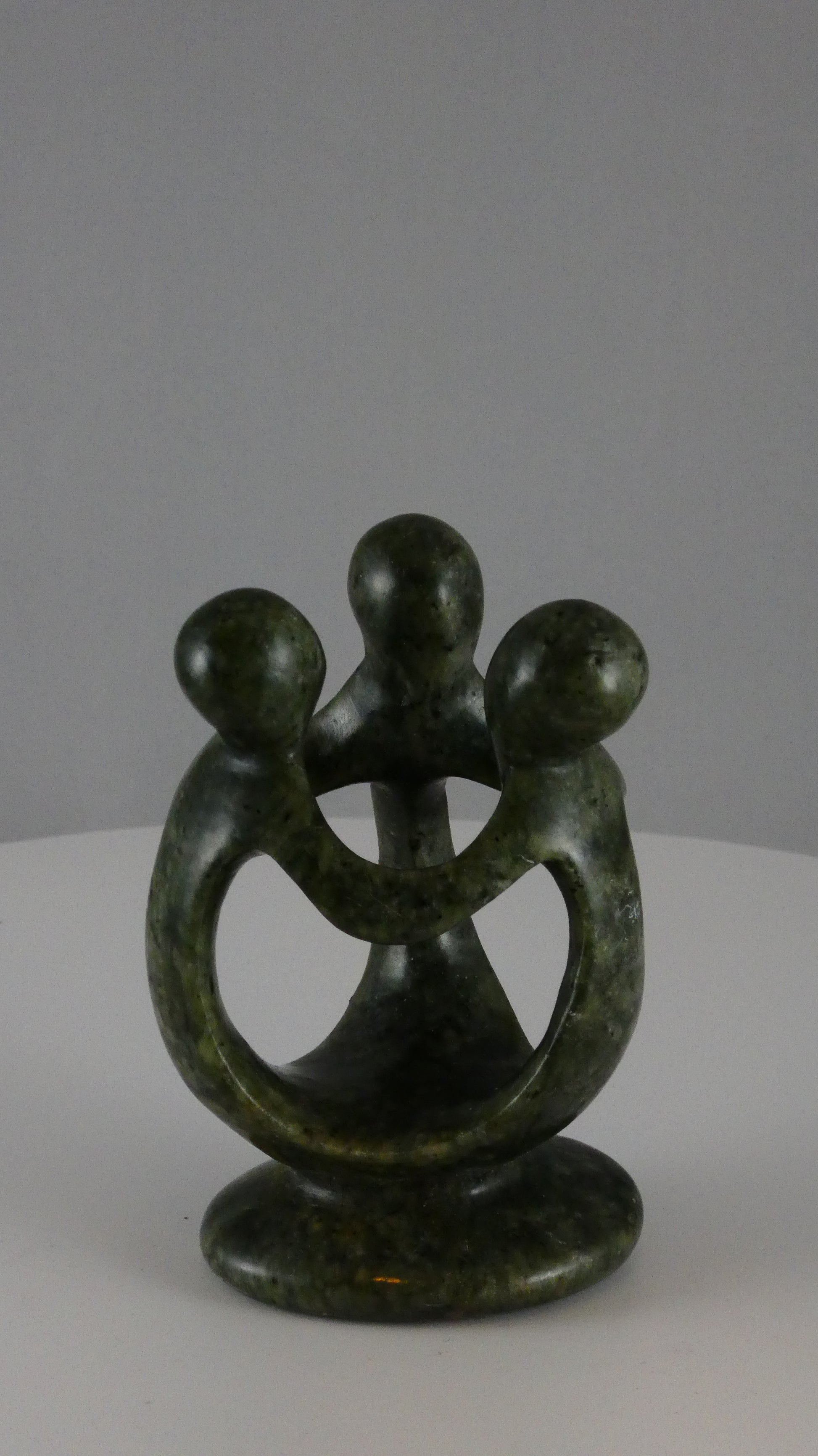 Stenen beeld, groep van 3 personen, 9 cm hoog, volledig glad afgewerkt