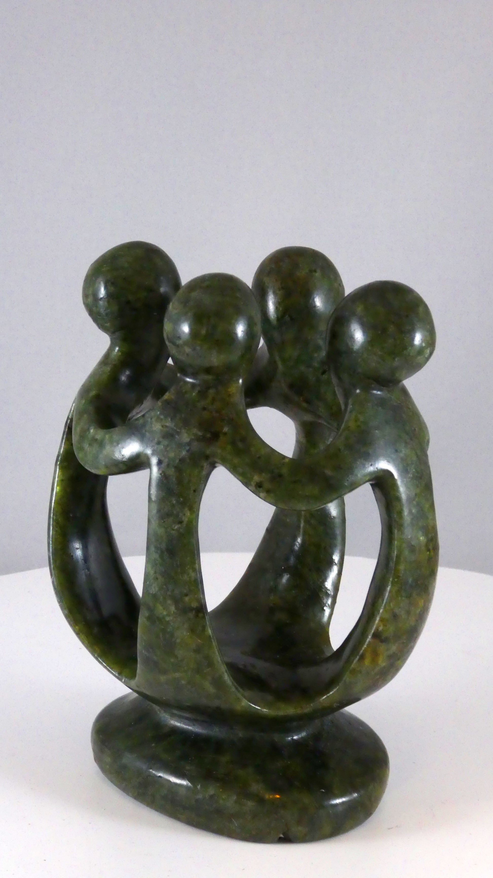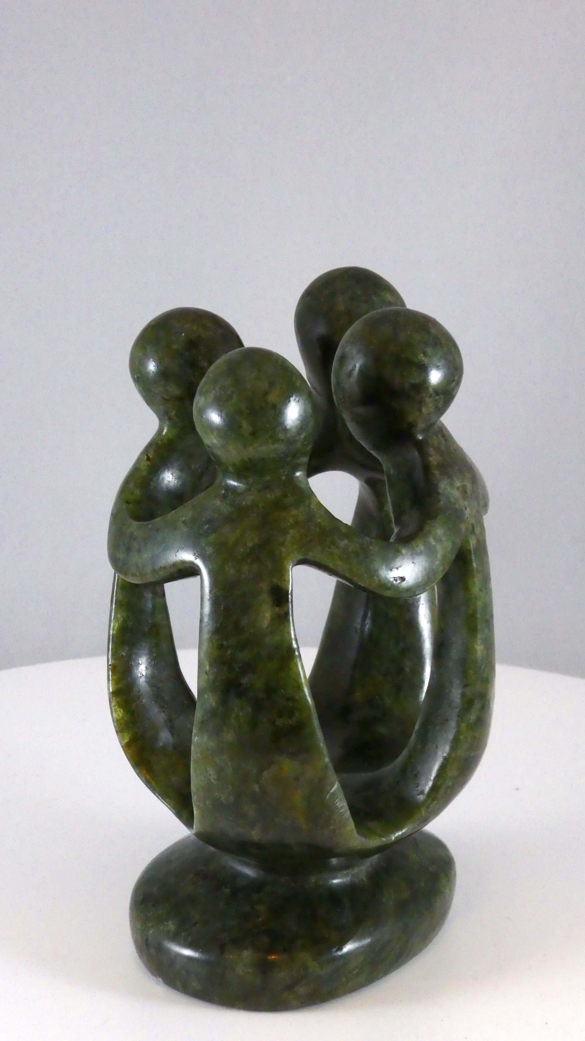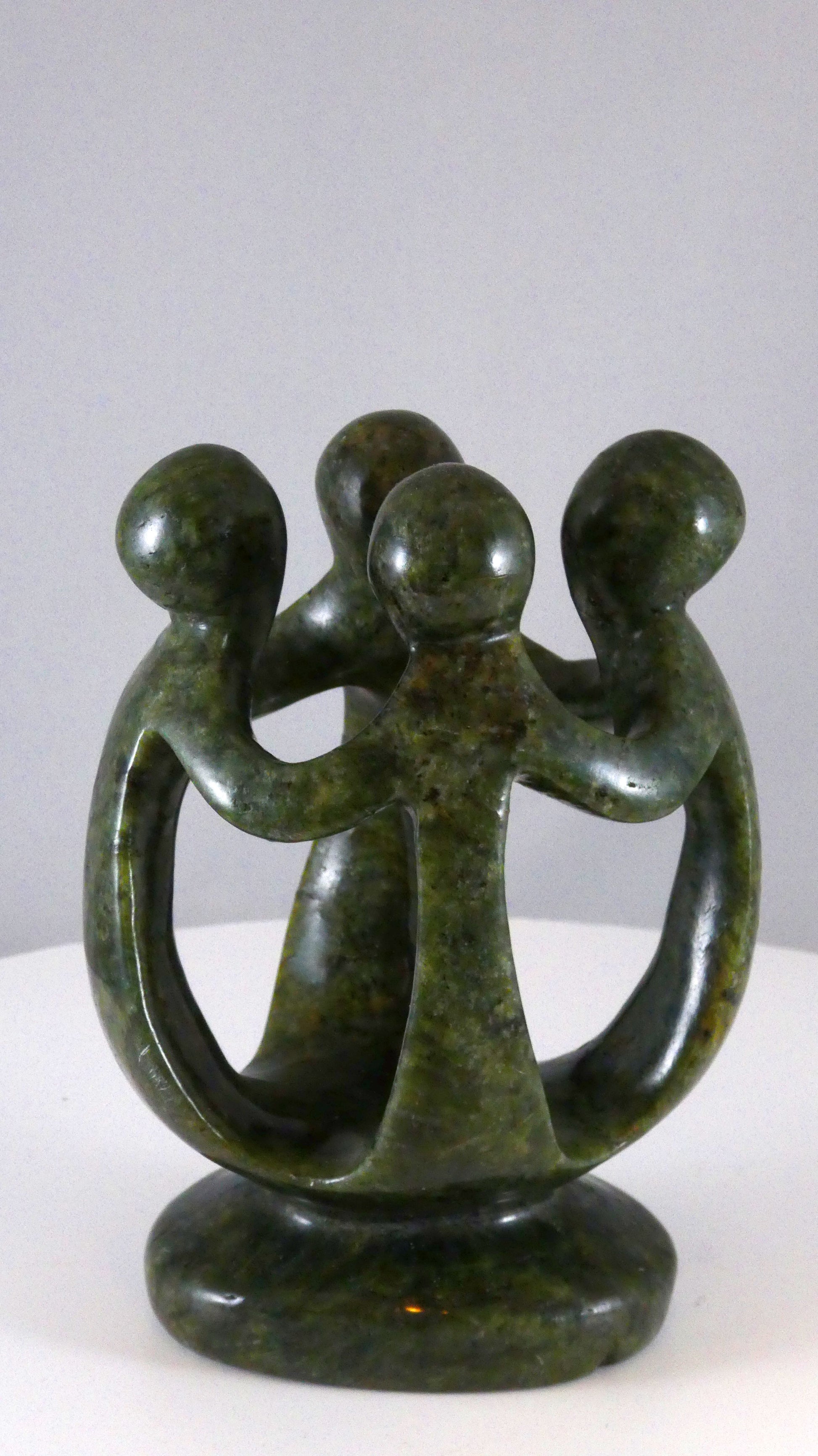 Stenen beeld, groep van 4 personen, 14 cm hoog, volledig glad afgewerkt