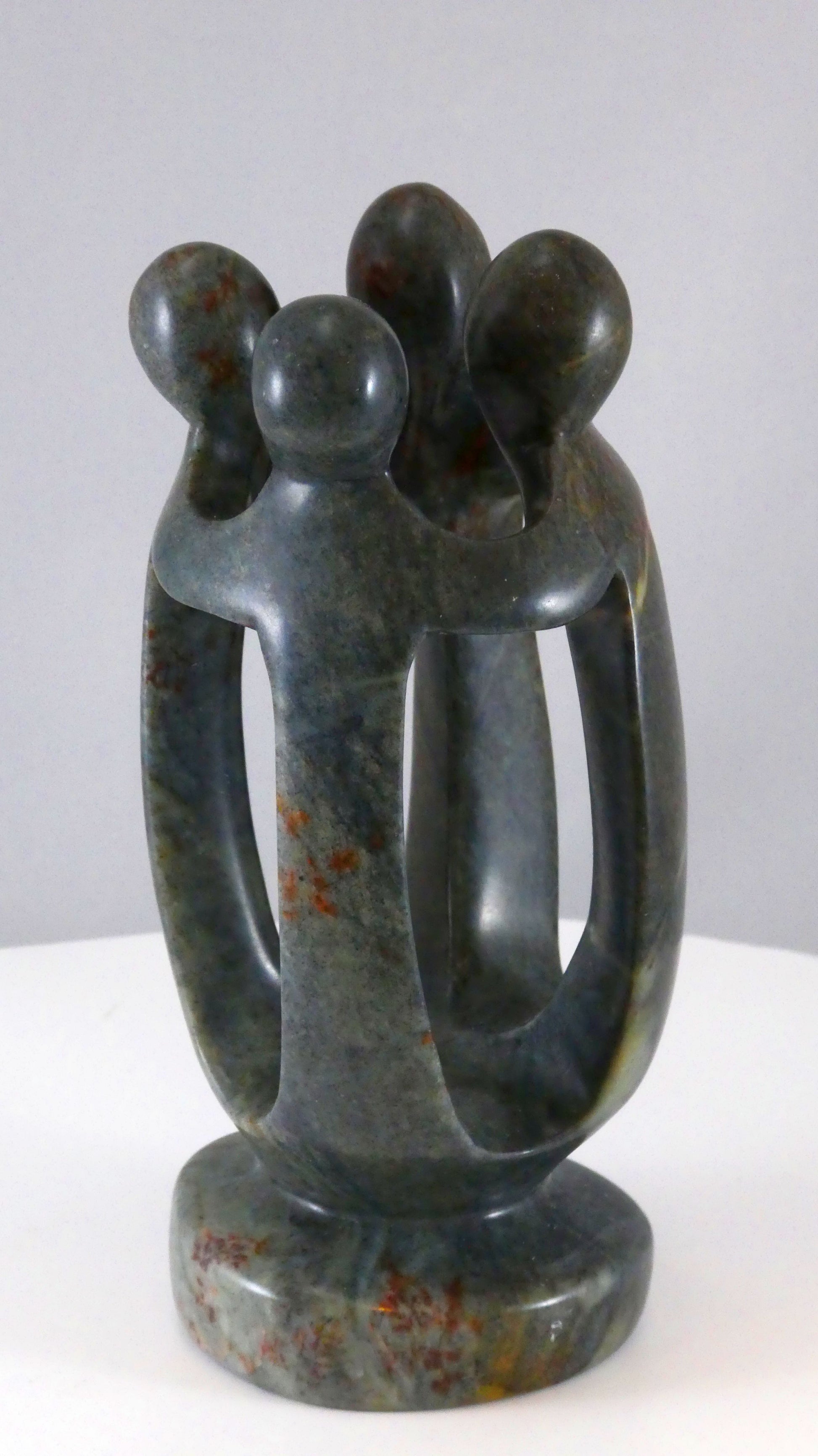 Stenen beeld, groep van 4 personen, 16 cm hoog, volledig glad afgewerkt
